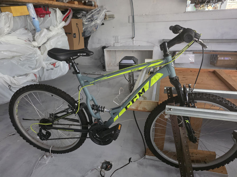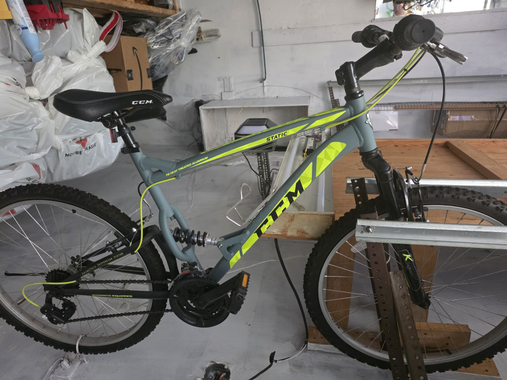 Selling a BRAND NEW Static mountain bike. It features a heat-treated aluminum frame and Shimano equipped gearing. Ready for some off-road adventures!