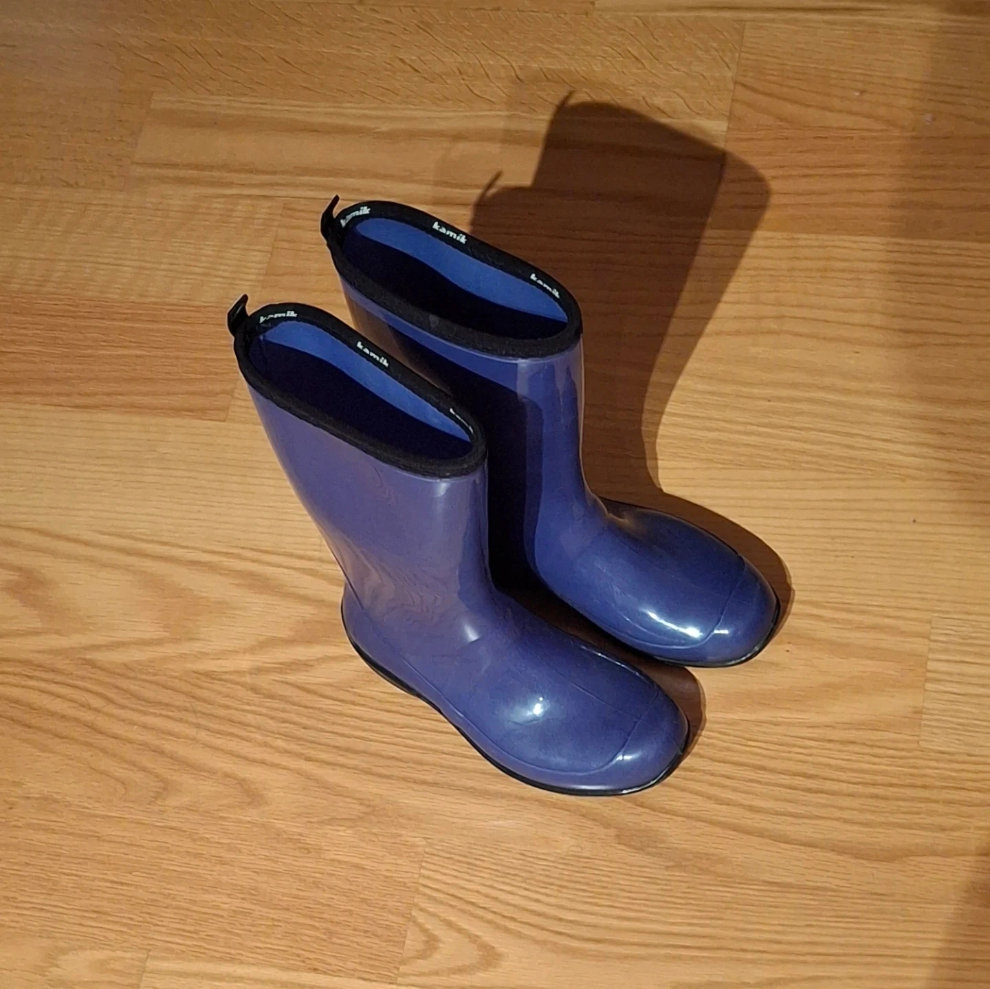 Lightly used Kamik Women's Heidi blue Rain Boots (12" high) which look great and are 100% waterproof. Made in Canada.