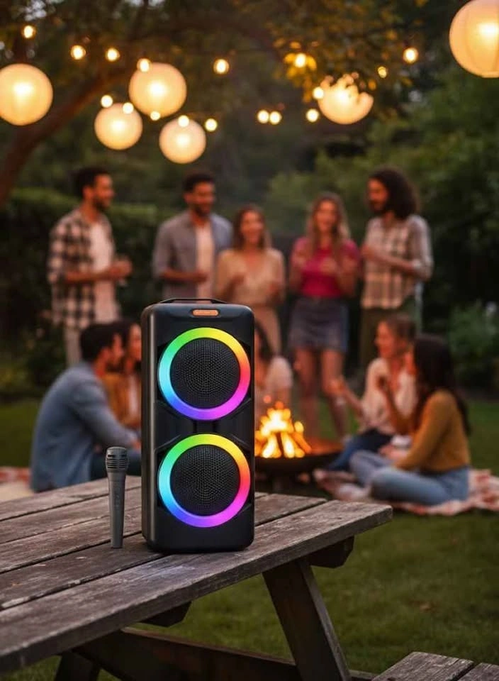 Portable Bluetooth Speaker w/ LED Lights & Mic