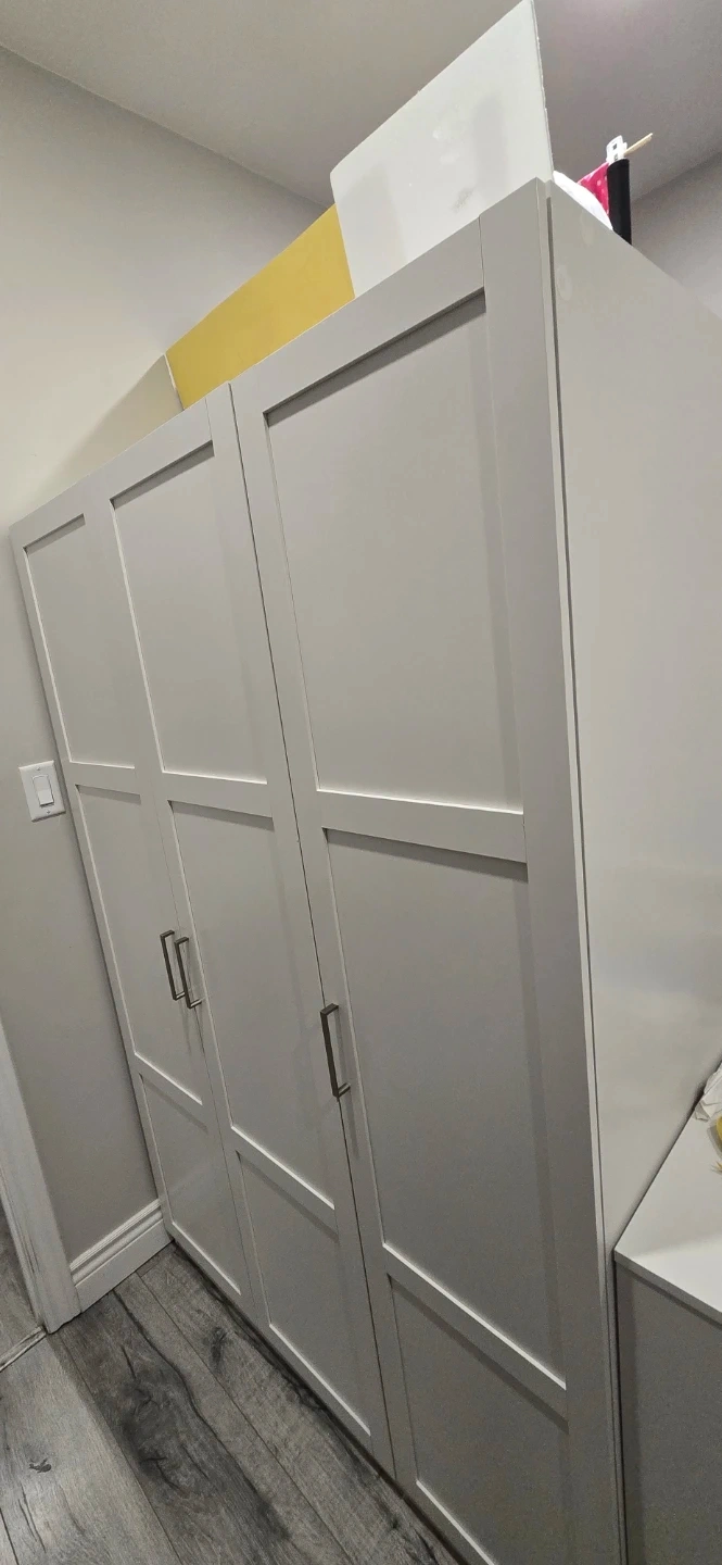 Selling a white, three-door wardrobe. It's in great shape and ready for a new home.