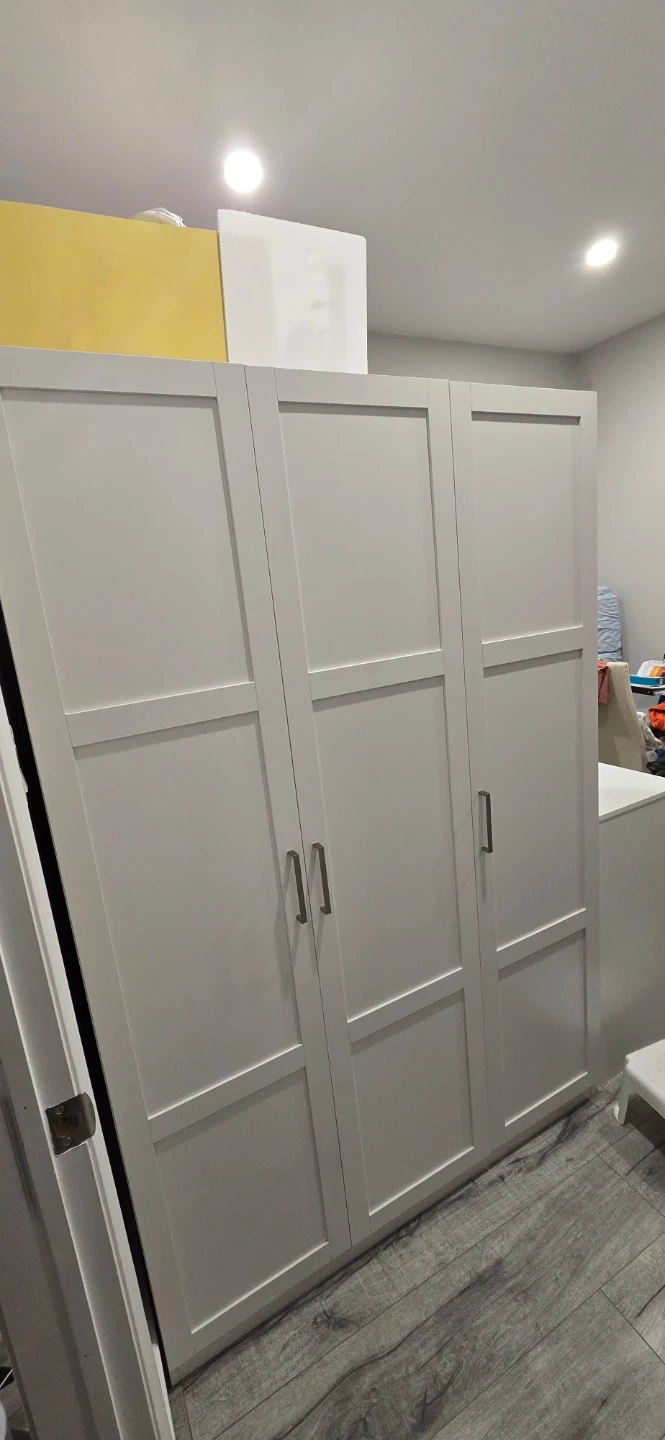 Selling a white, three-door wardrobe. It's in great shape and ready for a new home.