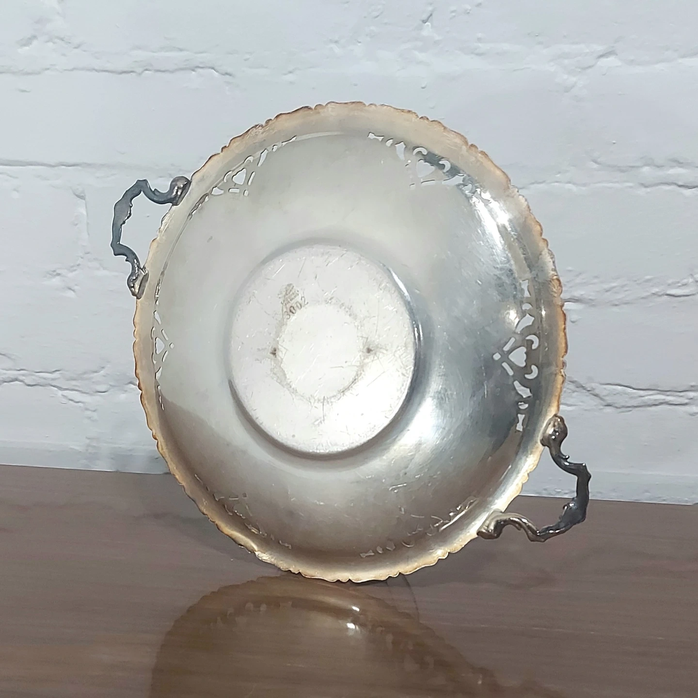Suitable for home/room decor, as a tray for jewelry/perfume/cosmetics, or for seasonal decor and center pieces. Measures 12 inches across with the handles, 9.5 inches across without. It's been on my various profiles for far too long now, and I would really like to see it GO, so please message me asap if you're interested! From a pet free and smoke free home.