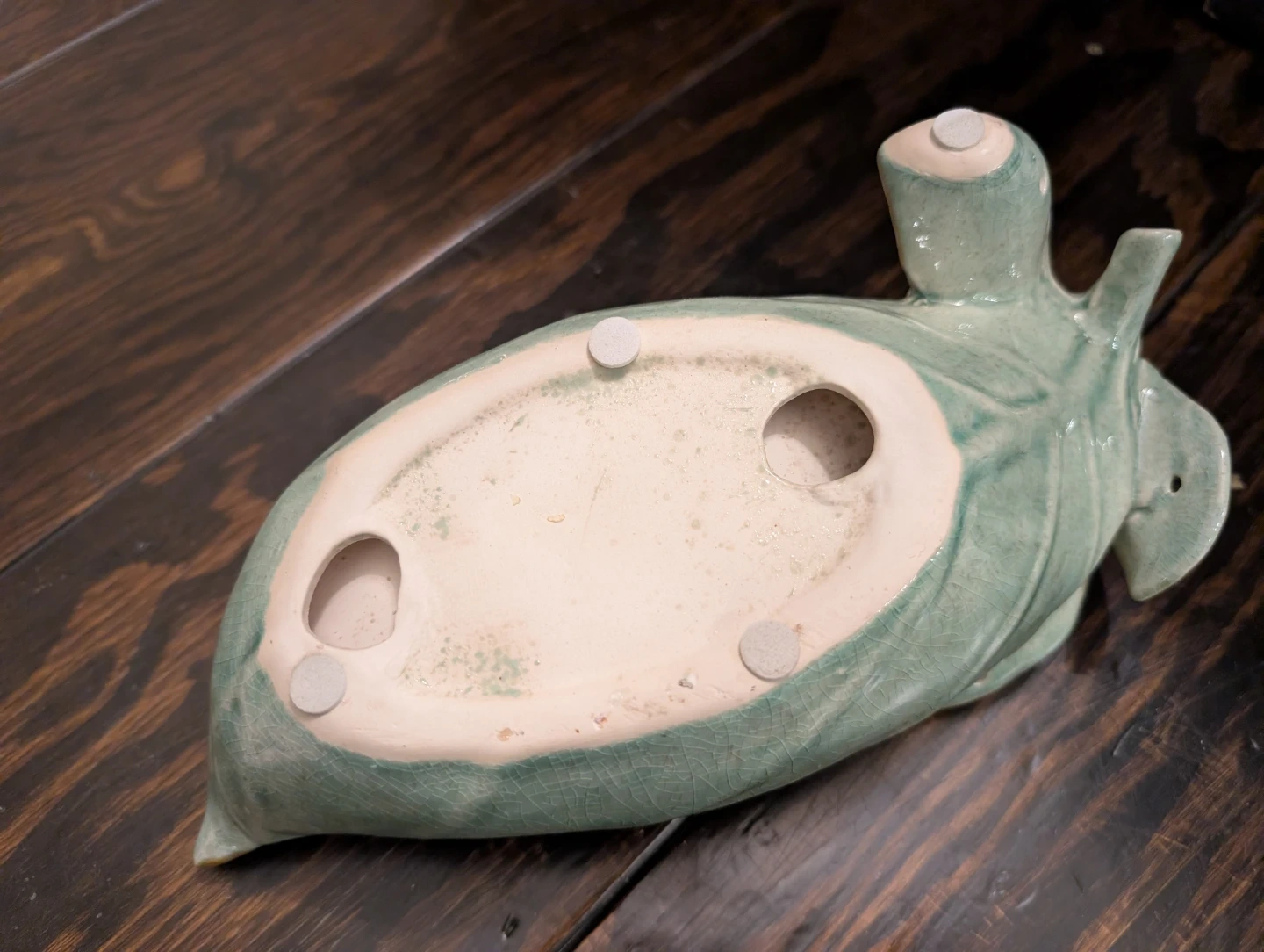 This decorative dish is shaped like a leaf with a little bird accent. It's perfect for holding small jewellery or keys. Ceramic material.