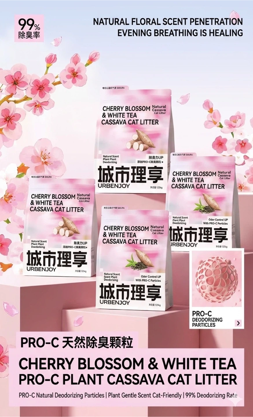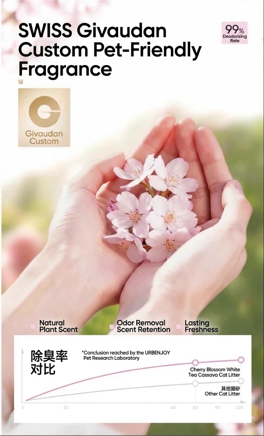 URBANJOY Sakura & White Tea Scented Cassava Cat Litters