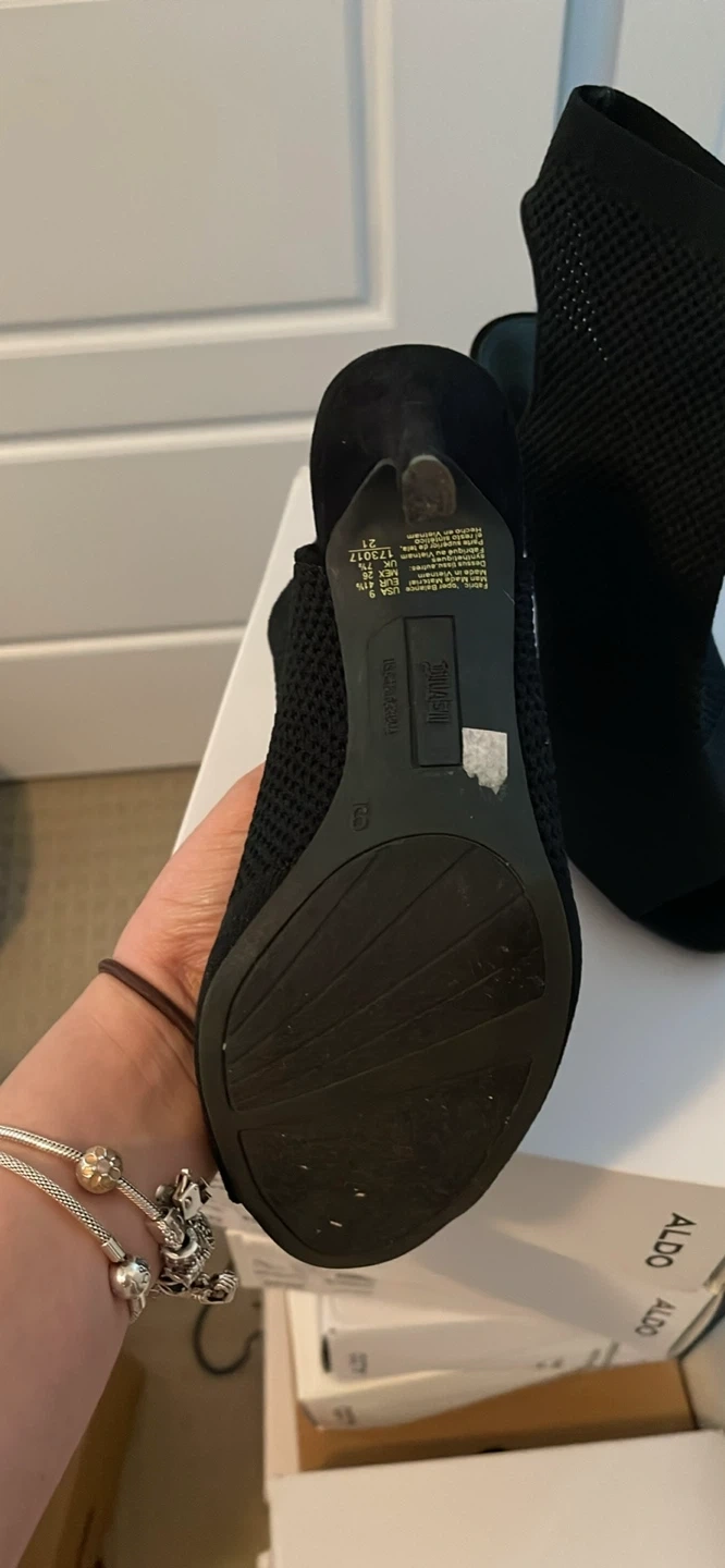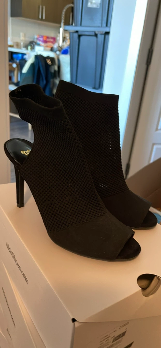 These are a pair of open toe booties in black, size 9. They're in good condition and ready for a new owner! The box is included.