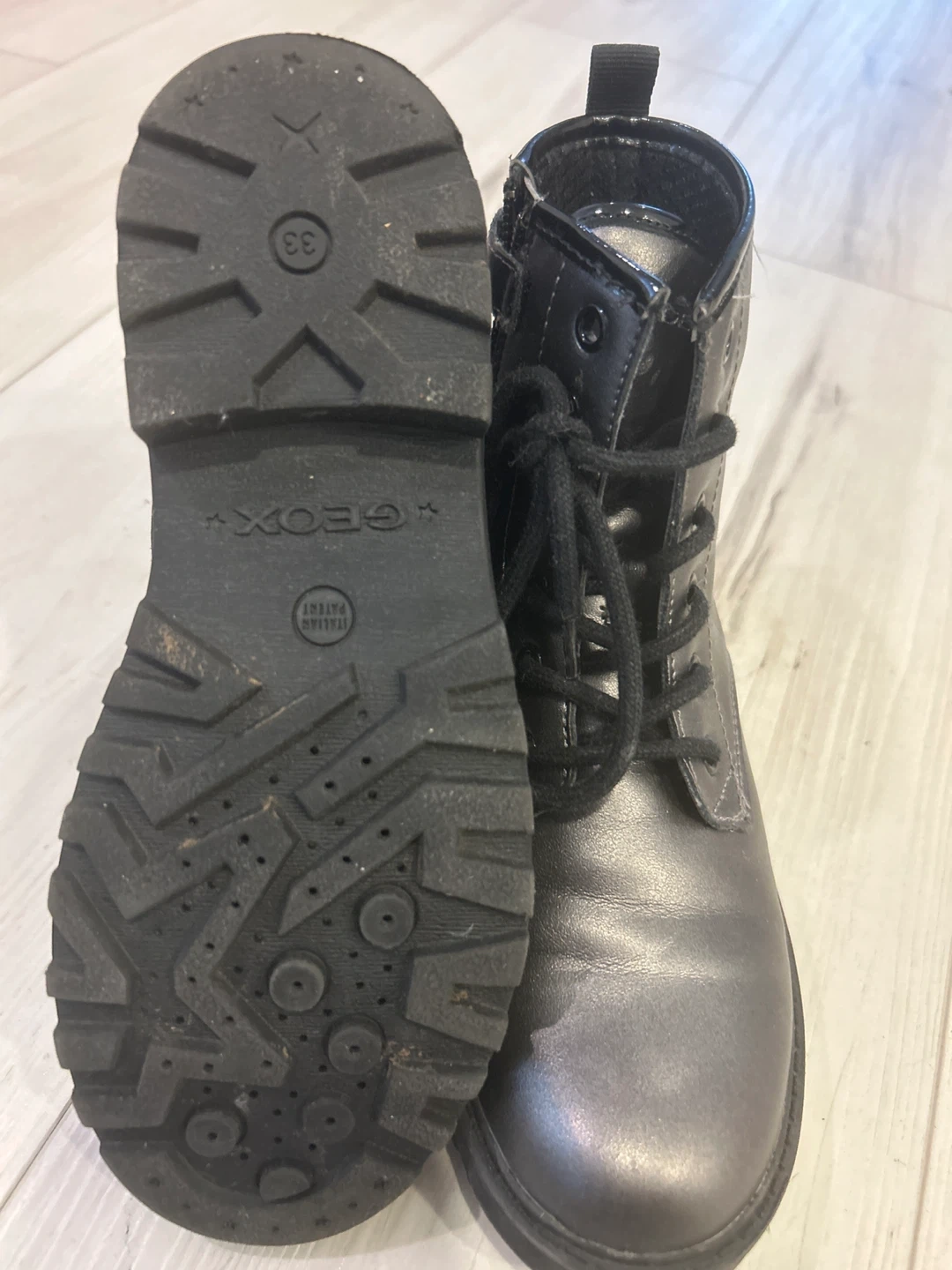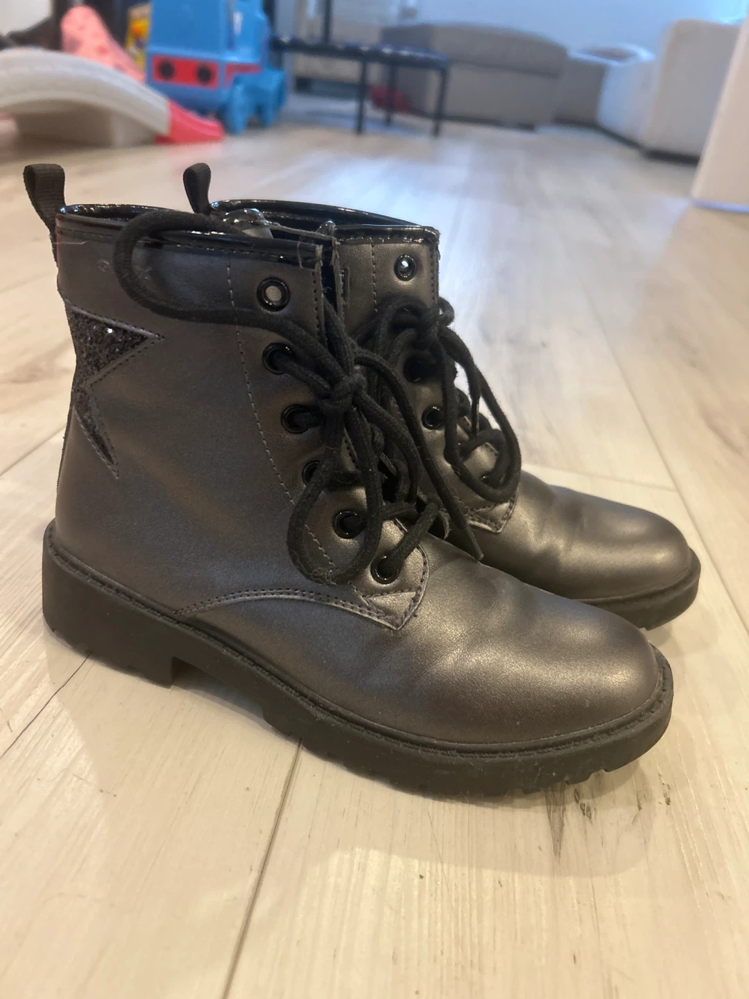 Selling a pair of Geox kids' boots in size 33. They are black/gun metal grey and have a star design on the side. Perfect for your little one!