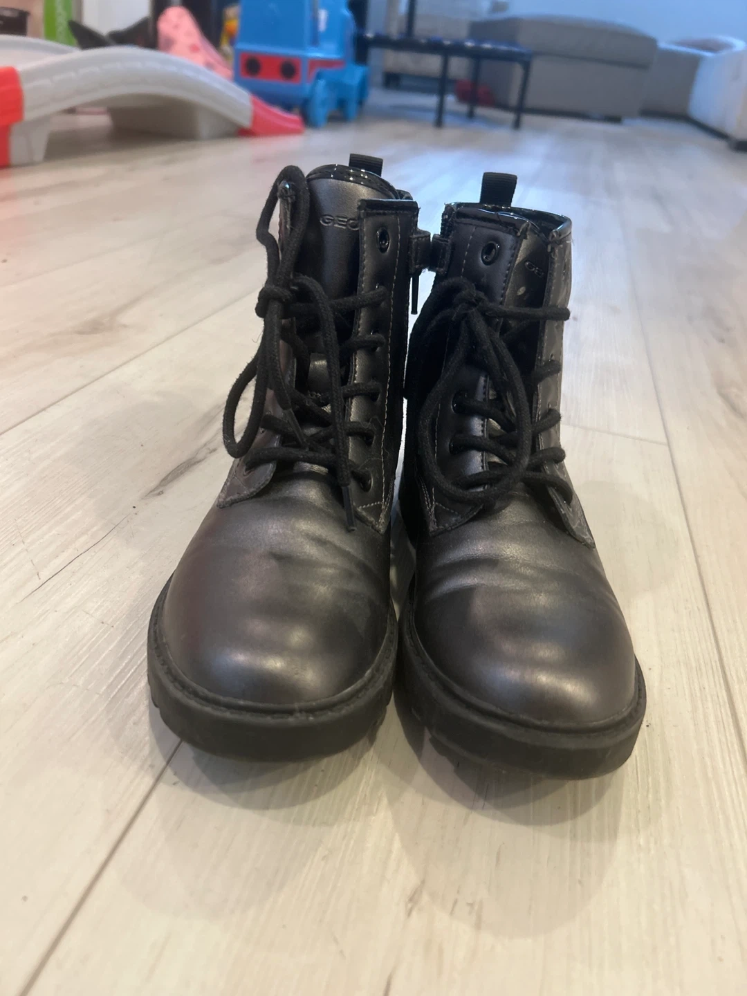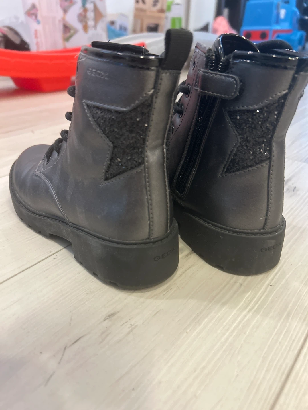 Selling a pair of Geox kids' boots in size 33. They are black/gun metal grey and have a star design on the side. Perfect for your little one!