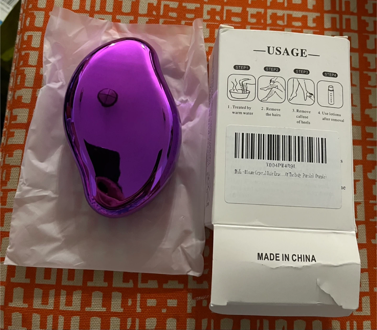 This is a crystal hair removal tool, perfect for smooth skin. It's designed for easy use on various body parts. The tool comes in a vibrant purple colour.