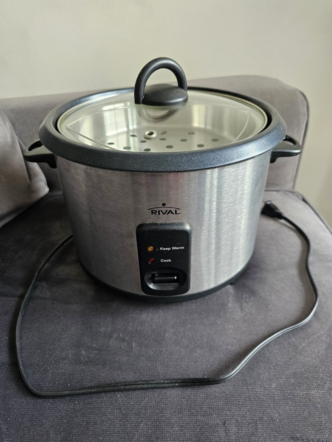RIVAL Stainless Steel 2-in-1 Steam and Rice Cooker