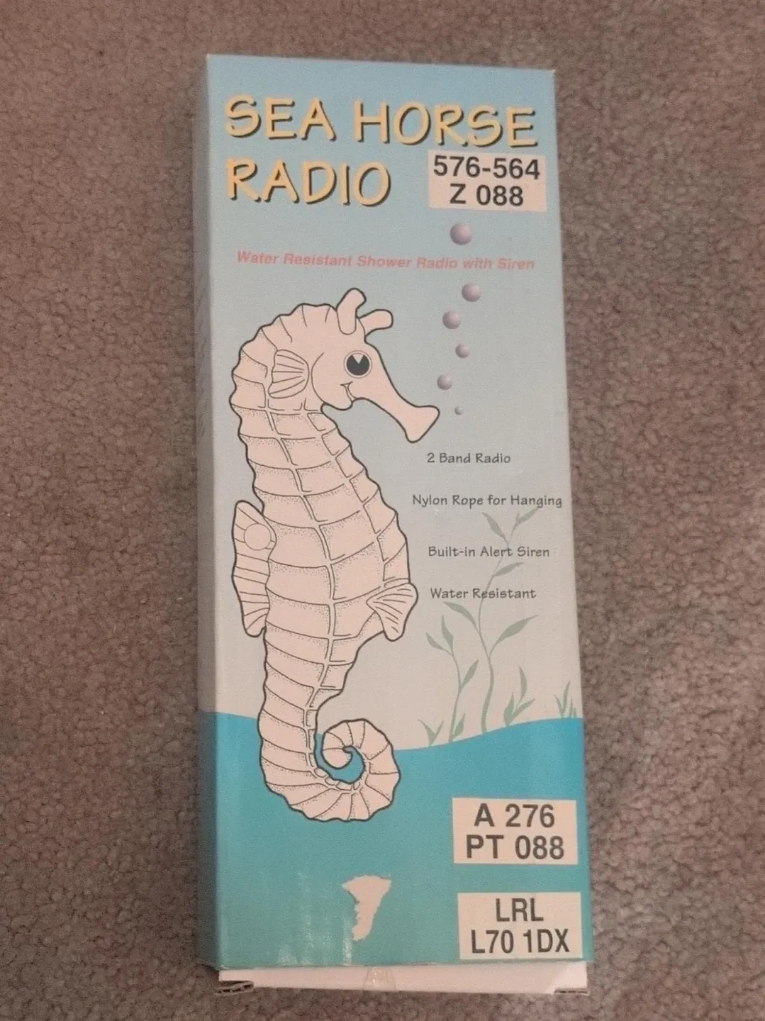 Water resistant shower radio with a siren. It's a 2-band radio with a nylon rope for hanging. Includes a built-in alert siren!