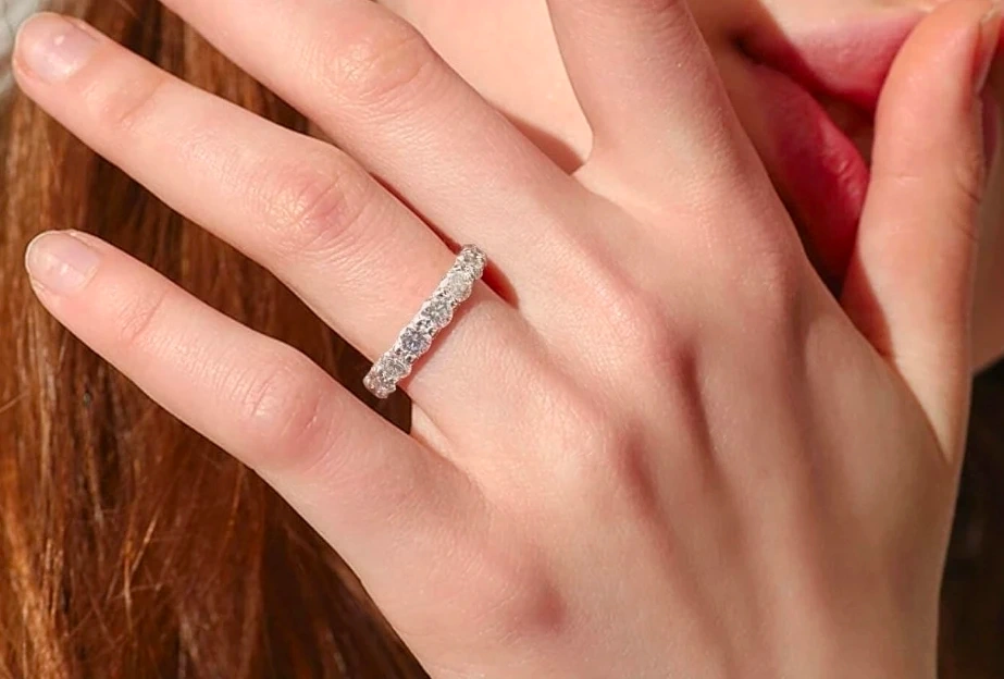 ¡Vendo un anillo de moissanita de plata 925 completamente nuevo, talla 8! Tiene una moissanita de 2,10 carats, calidad VVS, color D. Incluye la caja original. Precio original: $672.99.