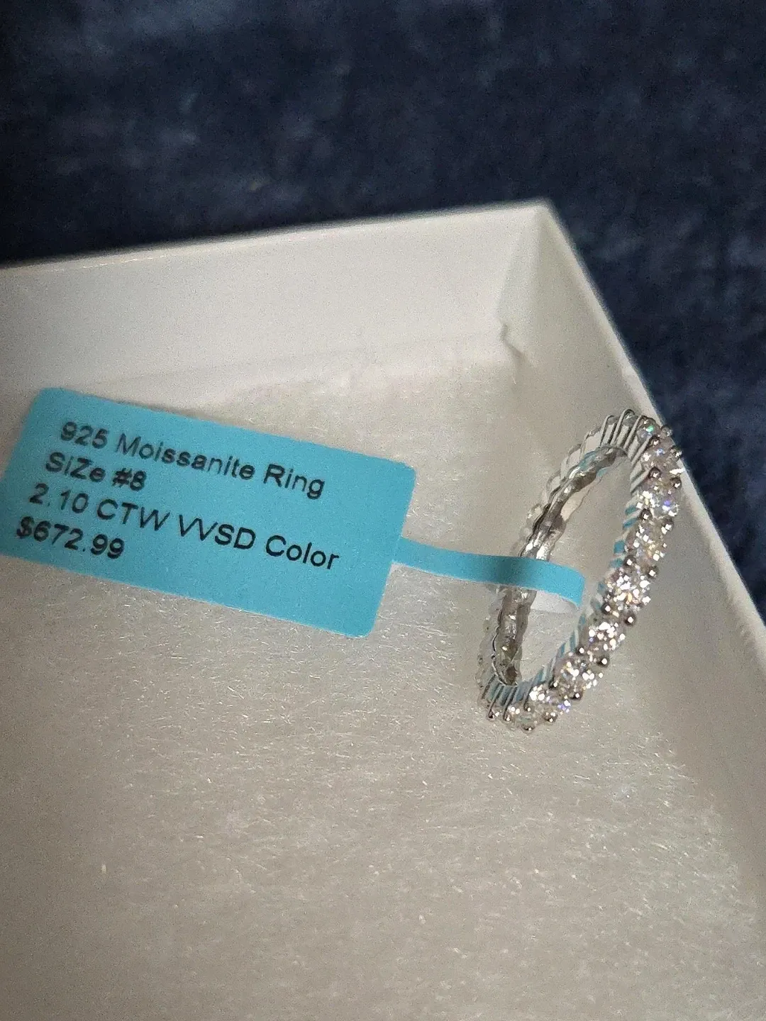 Selling a brand new 925 Moissanite ring in size 8! It has a 2.10 CTW VVS D color. Comes with the original box. Originally bought for $672.99