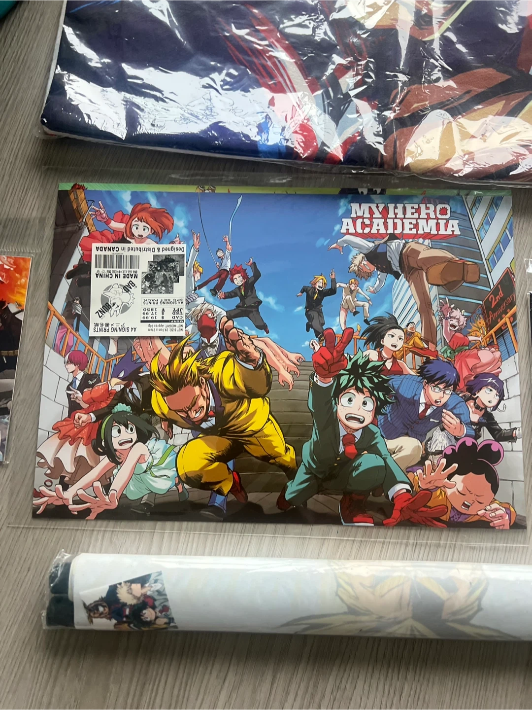 Toronto Comic Con My Hero Academia mystery bag set. It contains a keychain, notebook, poster, All Might pillow case, stickers and more. Perfect for any MHA fan.