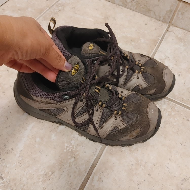 Salomon trail walking shoes. Featuring Contagrip soles for excellent traction. These shoes are great for hitting the trails or everyday wear. Size 8.5