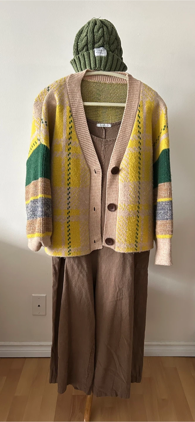 Cardigan, Jumpsuit and Beanie (small medium) Set
