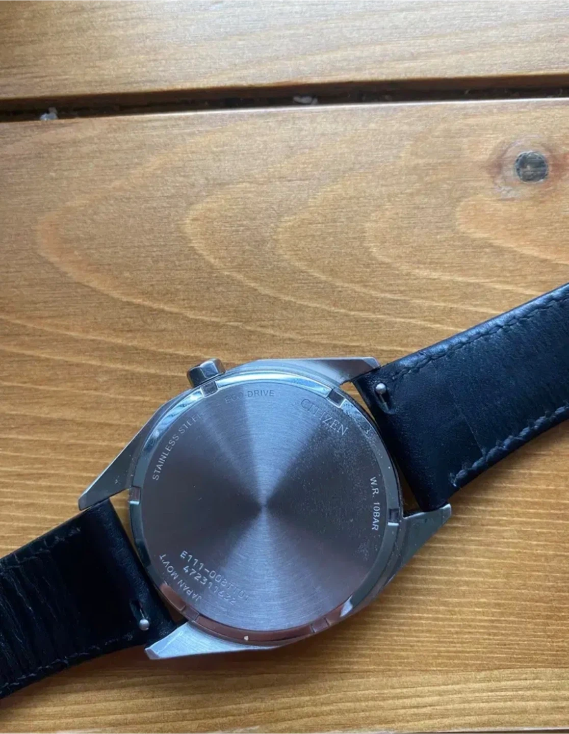 Originally came with a metal bracelet, but it has been replaced with a $50 leather strap, which is currently installed. The watch is in excellent condition with minimal signs of use.