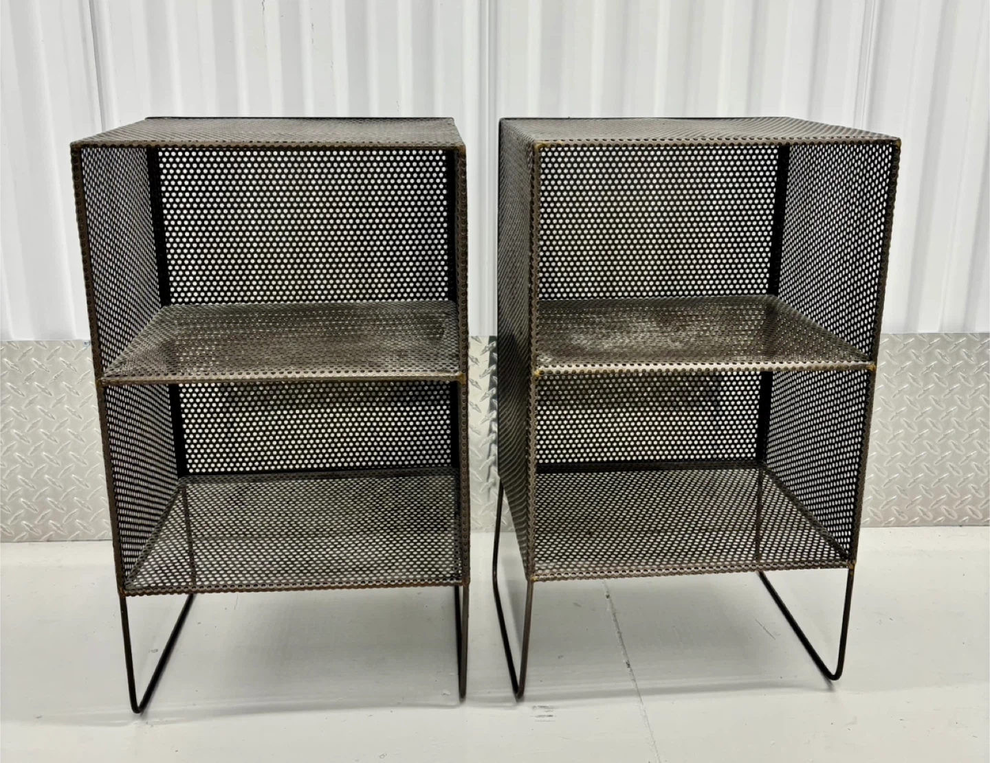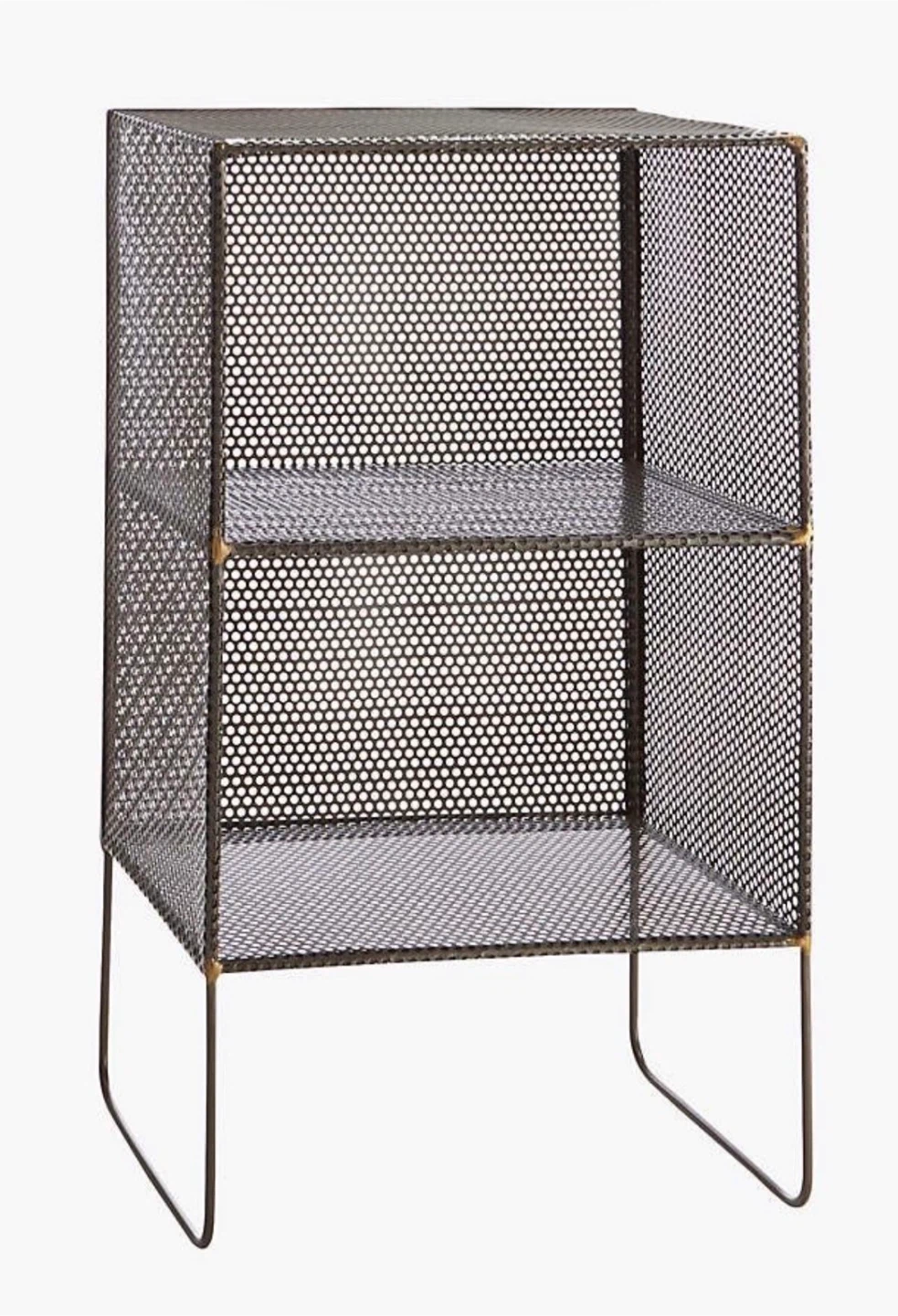 Cash $150 Industrial mesh cubbies rise single file, two tiers tall, on handcrafted iron frame with exposed brass welding. Shelves shoes, books and wine in the bedroom, office, kitchen or entryway. We like to grid the wall with multiples to maximize small spaces. sift gunmetal 2-story tower is a CB2 exclusive. • Handmade • Iron • Wipe with a damp cloth • Indoor use only OVERALL DIMENSIONS Width: 14.25" Depth: 11.5" Height: 24" INSIDE SHELF Width: 13.5" Depth: 11" Height: 8.5"