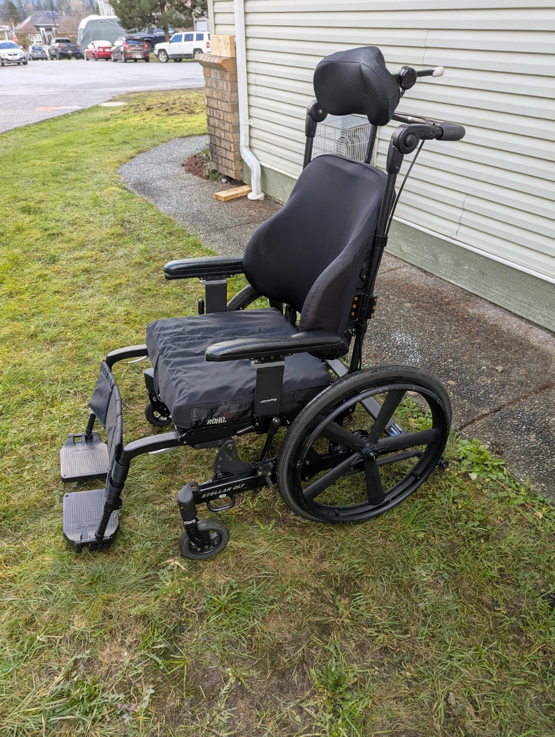 This PDG Mobility Stellar GLT tilt wheelchair features a Roho seat cushion for comfort. It was manufactured in 2022 and includes a seatbelt. This is a wheelchair that provides mobility assistance.The tilt function can go into a wide variety of positions, the push bar can be adjusted, plus the headrest and foot rests can all be adjusted to the correct fit. The leg rest is velcro and removable or can be moved up or down for preferred comfort.
