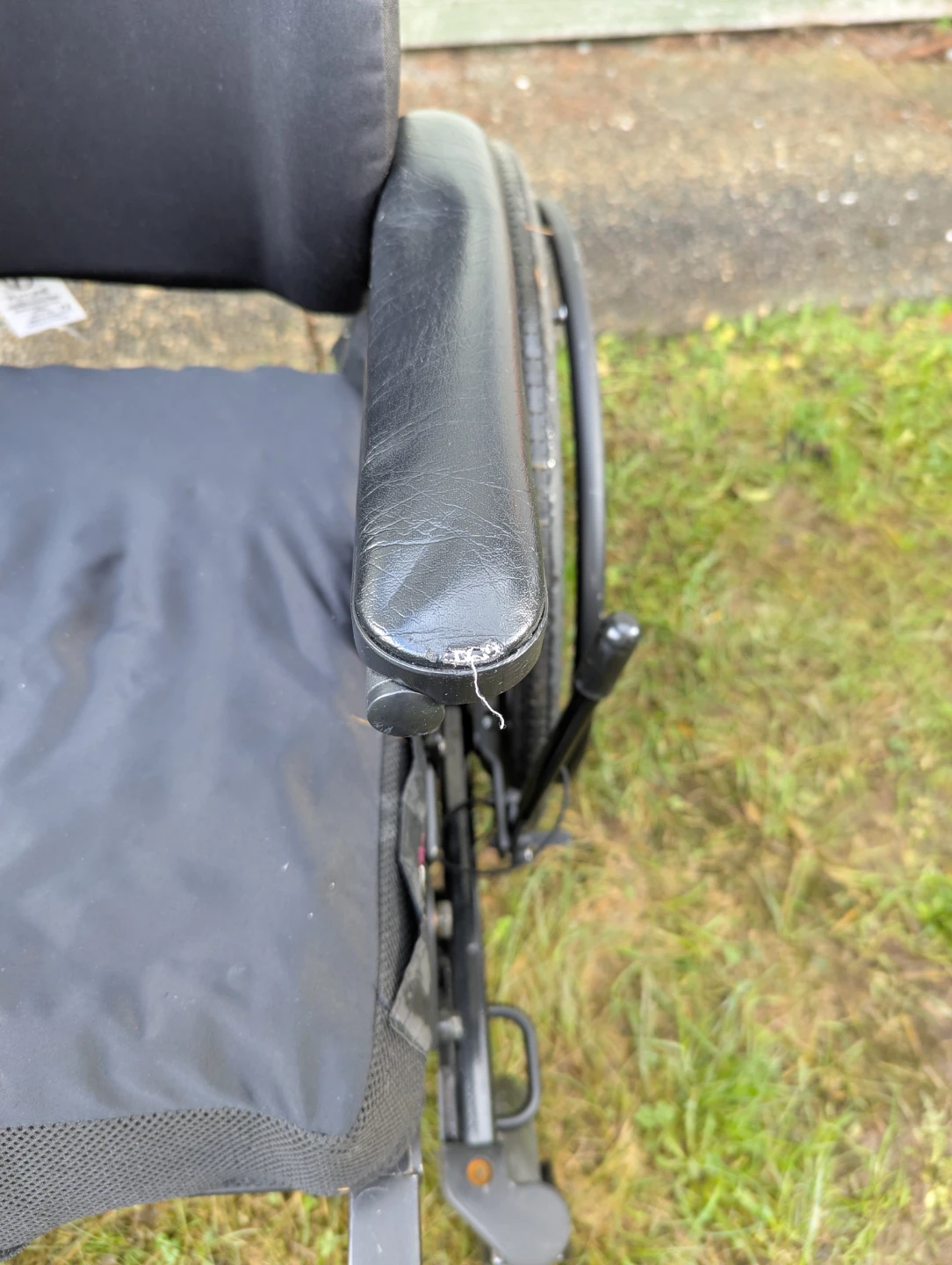There is a small wear spot on the left armrest. The chair was very comfortable and works great, it simply is not needed anymore due to a family members decreased mobility.