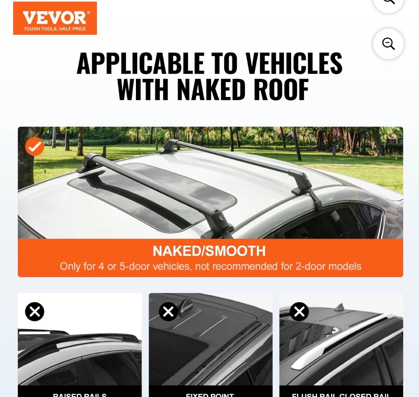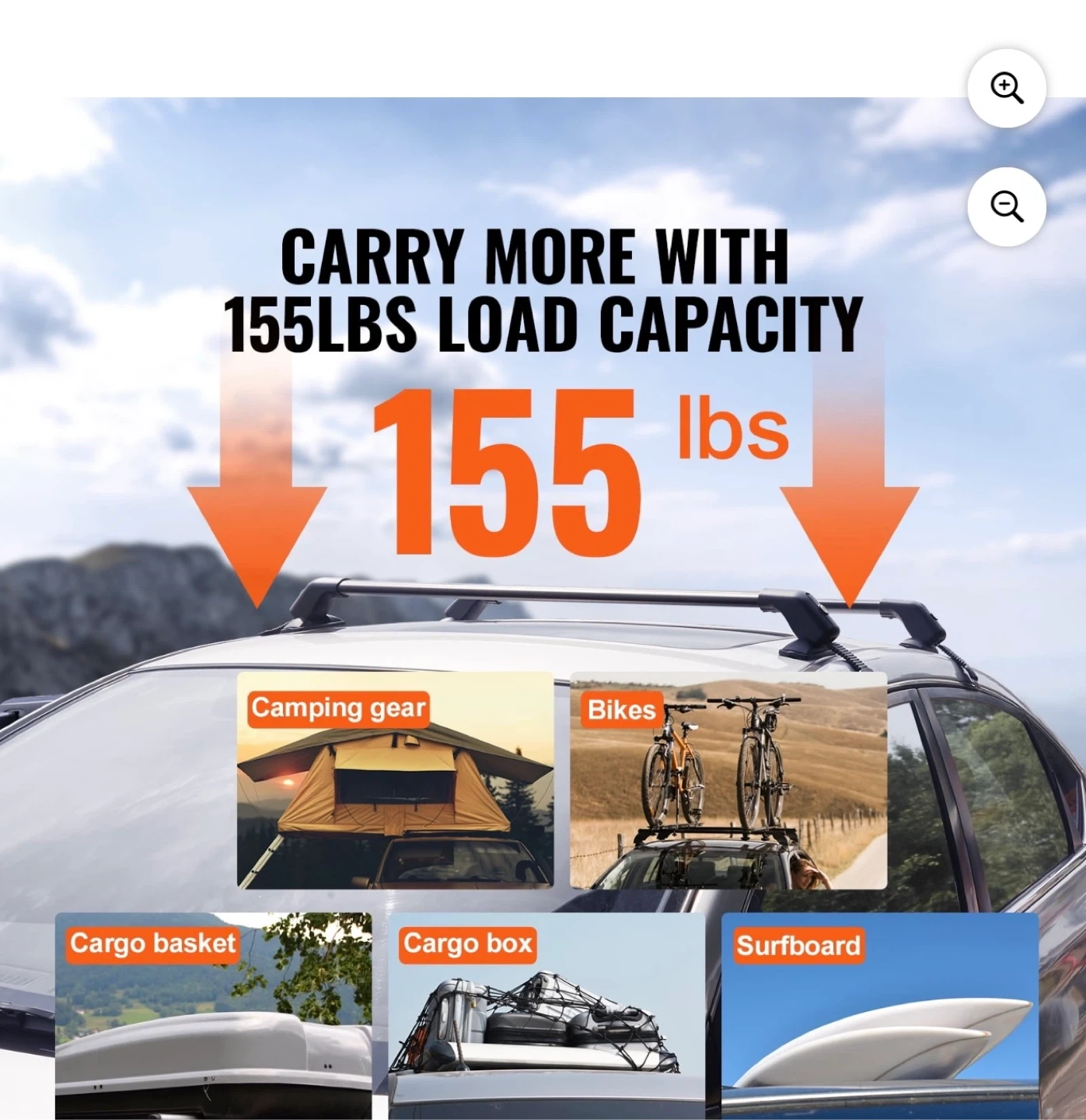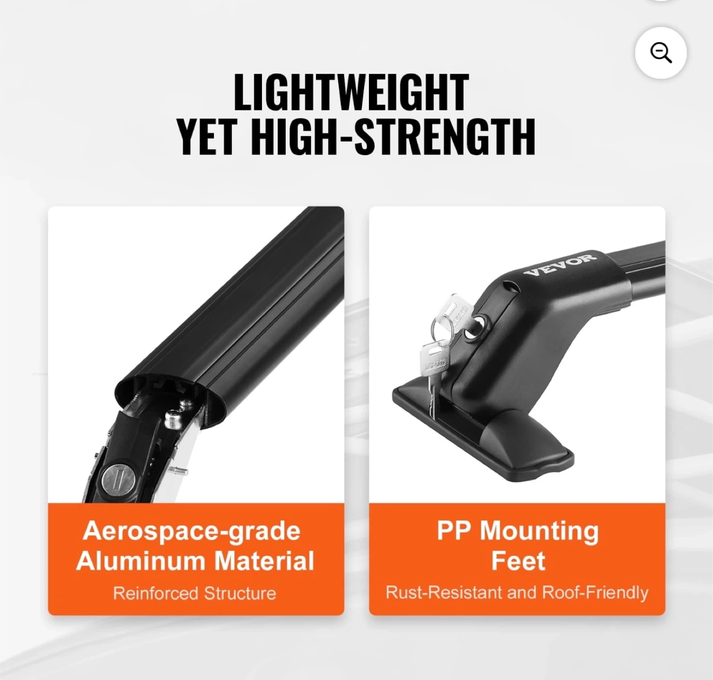 These VEVOR cross bars are made from aerospace-grade aluminum and PP mounting feet. They have a load capacity of 155 lbs and are designed for vehicles with a naked roof. Includes keys for locking mechanism.