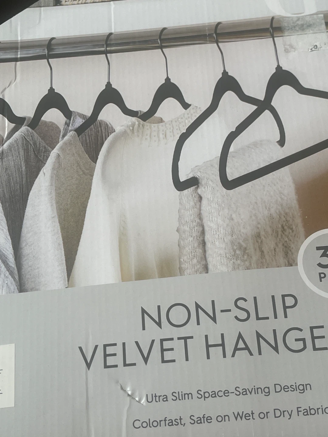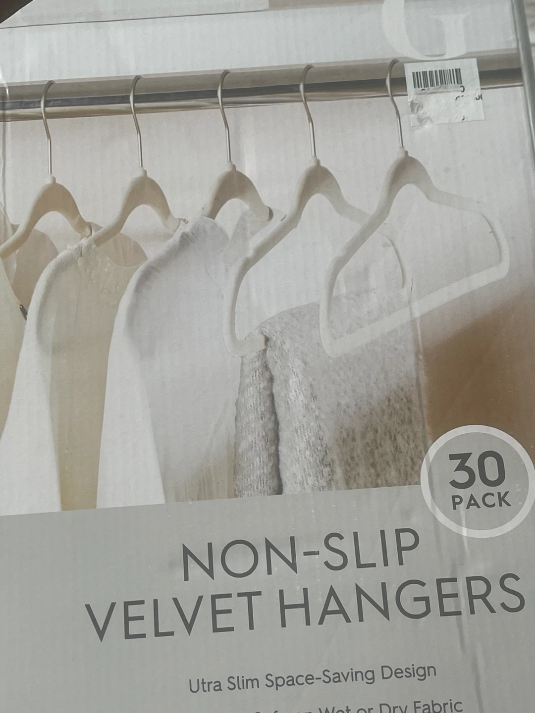 Selling a 30-pack of non-slip velvet hangers! These hangers have an ultra slim, space-saving design and are colourfast, safe on wet or dry fabric