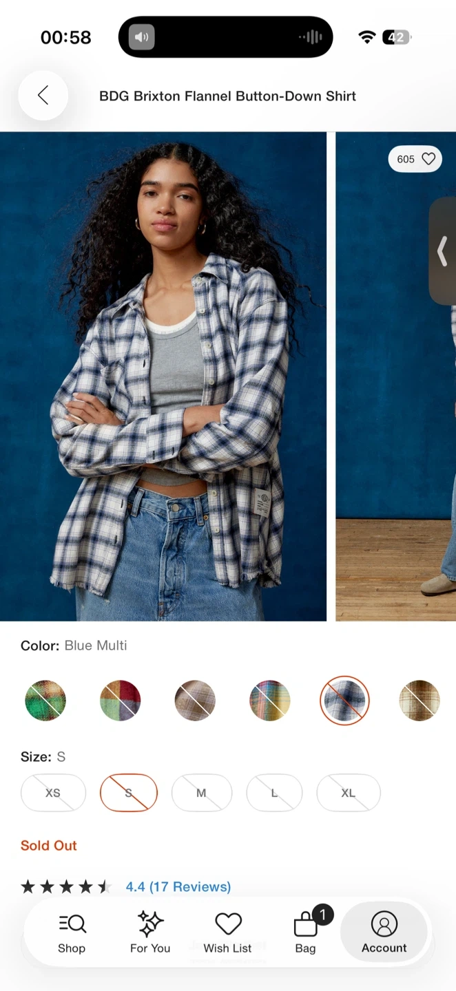 This is a BDG Brixton Flannel Button-Down Shirt in size small. It's a blue multi colourway. The shirt is made of flannel material.