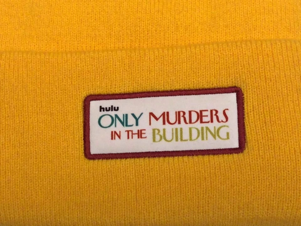 Cozy yellow beanie from Hulu's Only Murders in the Building. Has the show logo patch on front. Great for fans of the show. Public meetup in Manhattan / Hell's Kitchen.