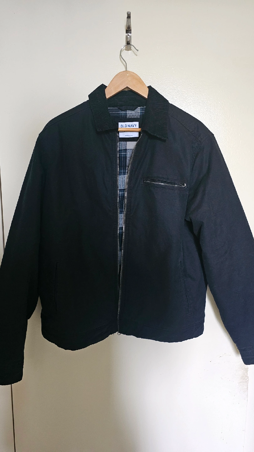 10Selling a gently used black jacket from Old Navy in size medium. It's in great condition and perfect for layering during the cooler months. The jacket features a zipper closure and a classic design that goes well with any outfit. It's made from comfortable materials for everyday wear