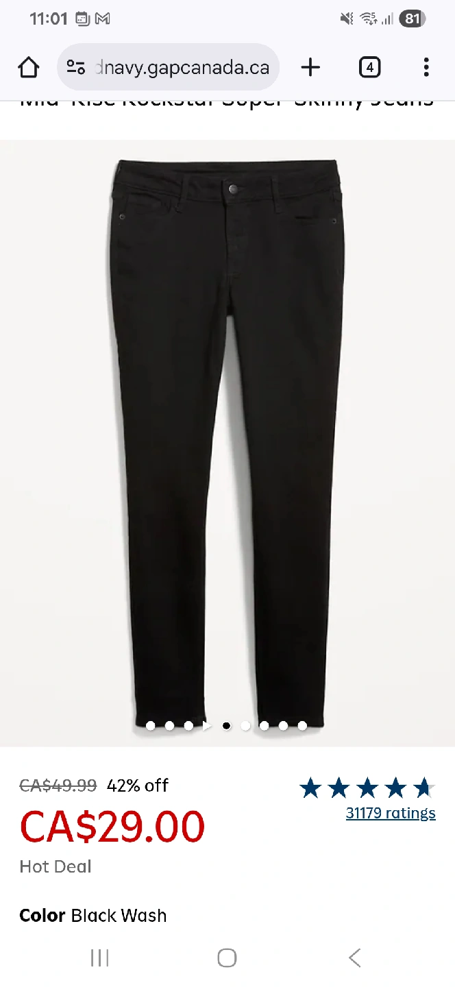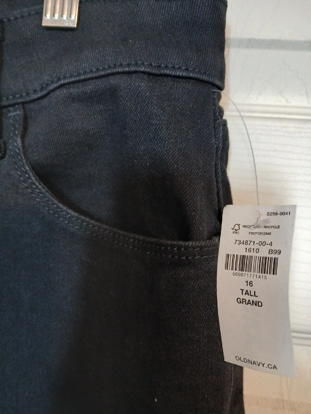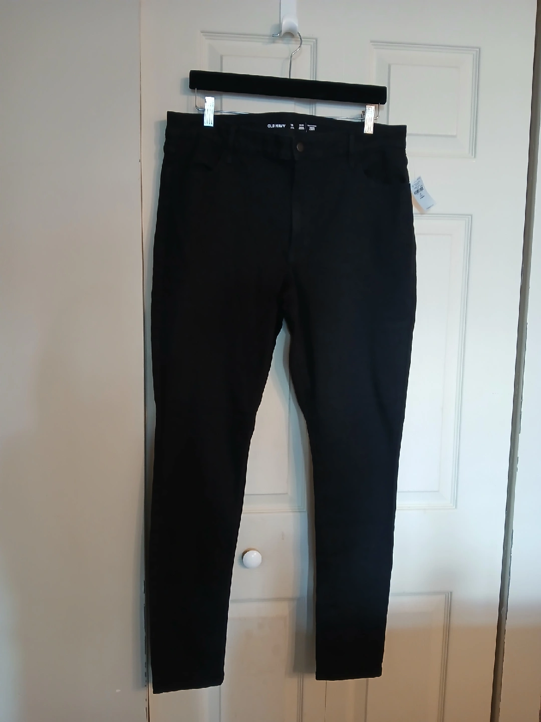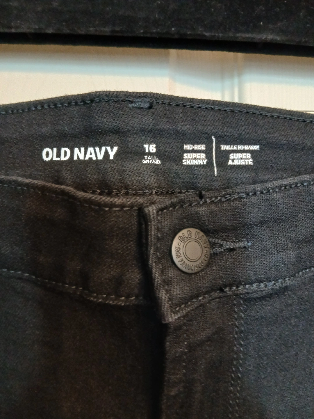 818Brand: Old Navy Type: Mid rise super skinny jeans. Extremely versatile. Matches with every outfit! Colour: black Size: 16 tall (like an extra large) Additional measurements: waist is 92 cm, hips/butt is 118 cm, 32 inches tall inseam Composition / material: 73% cotton, 25% polyester, 2% spandex Condition: Brand new with tags (BNWT). Giftable for birthdays, the holidays like Christmas, etc.
