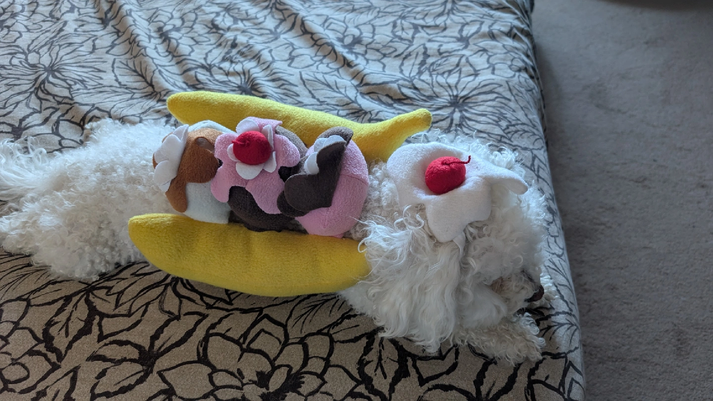 Super cute Old Navy pet costume! It's a banana split design and size XS/TP. Your furry friend will be the sweetest treat around
