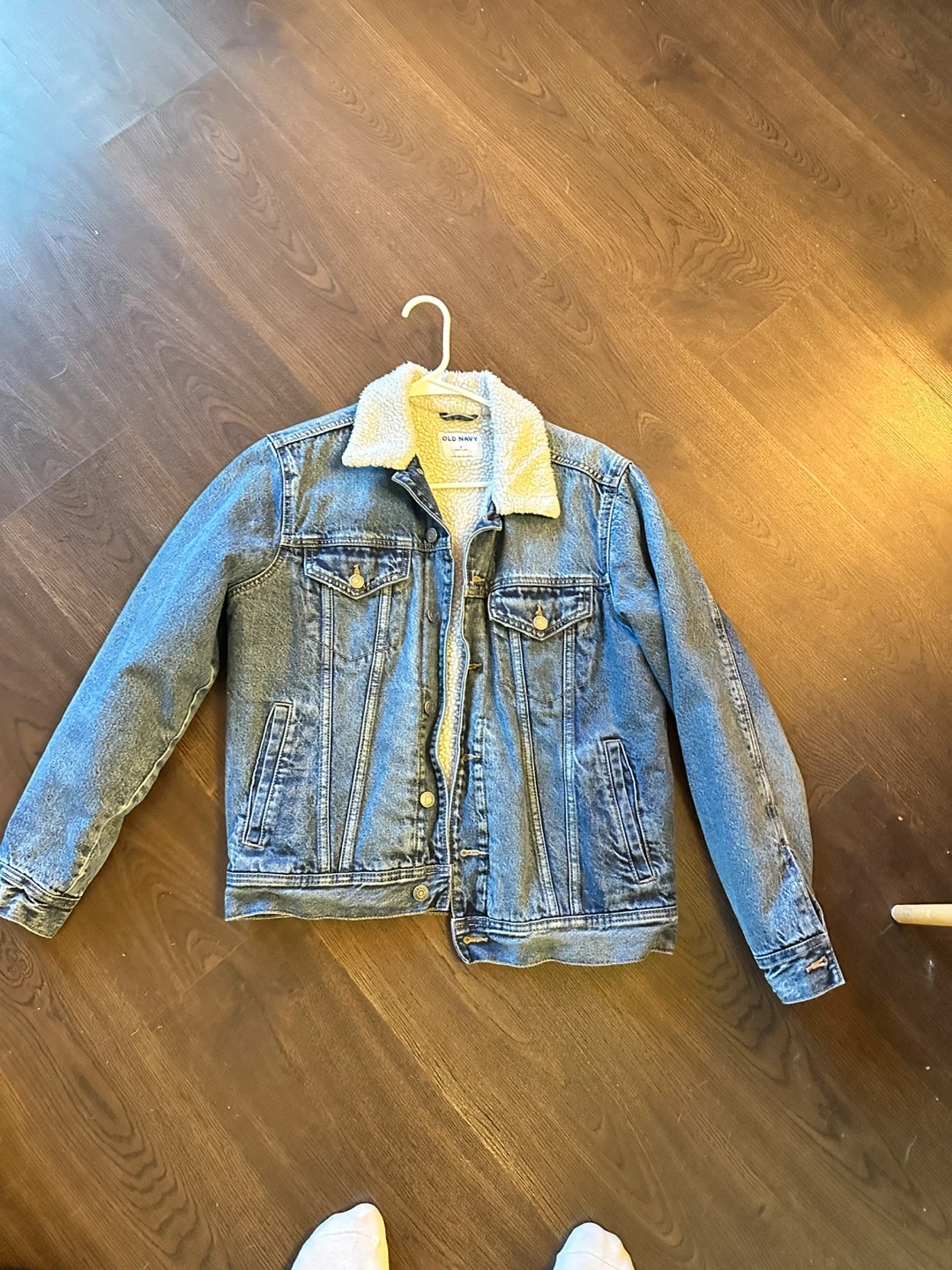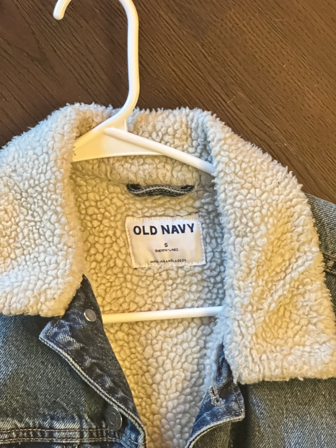 10Selling a gently used denim jacket from Old Navy! It's a size small and features a cozy sherpa lining. Perfect for layering during the cooler months!