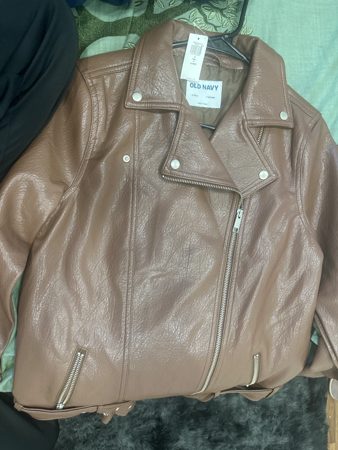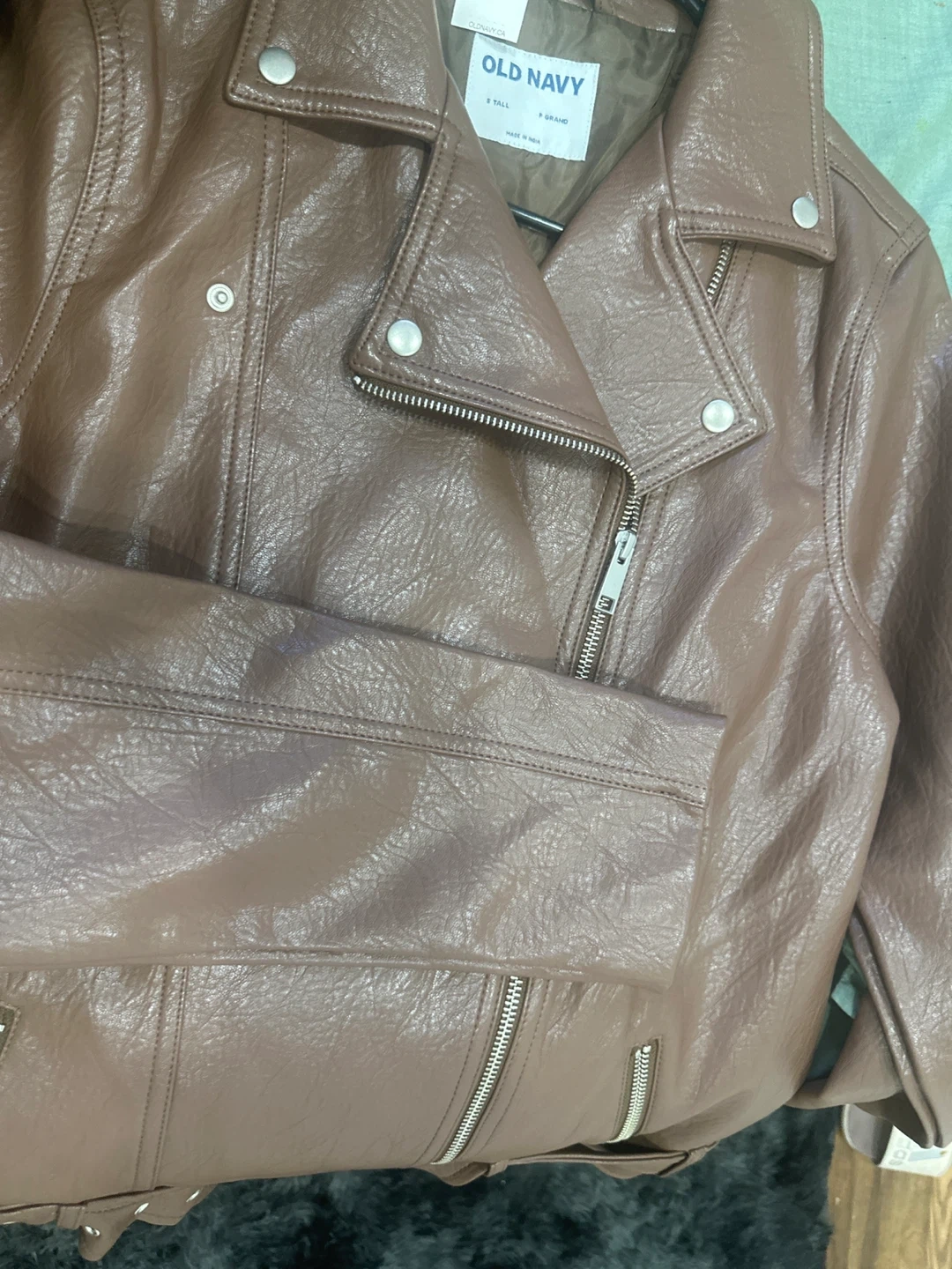 10Here's a stylish Old Navy faux leather jacket in size small tall. It's a great piece to add to your wardrobe!