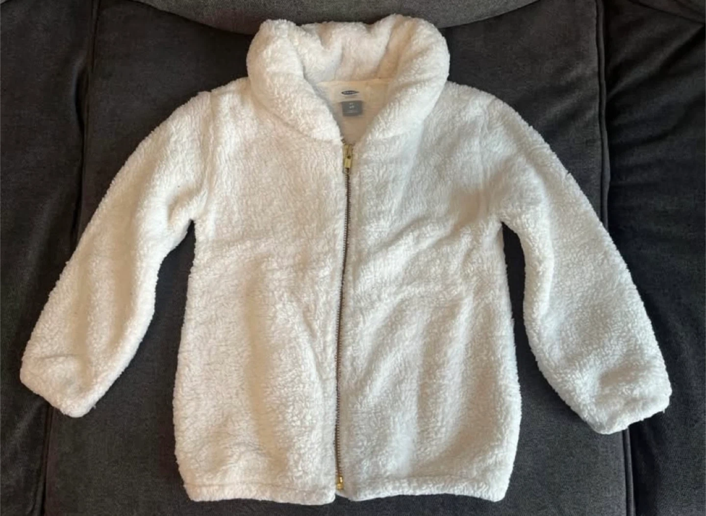 10Here's a super cozy Old Navy sherpa jacket for girls! It's a size 4T and in a lovely white colour. Perfect for keeping warm on chilly days!