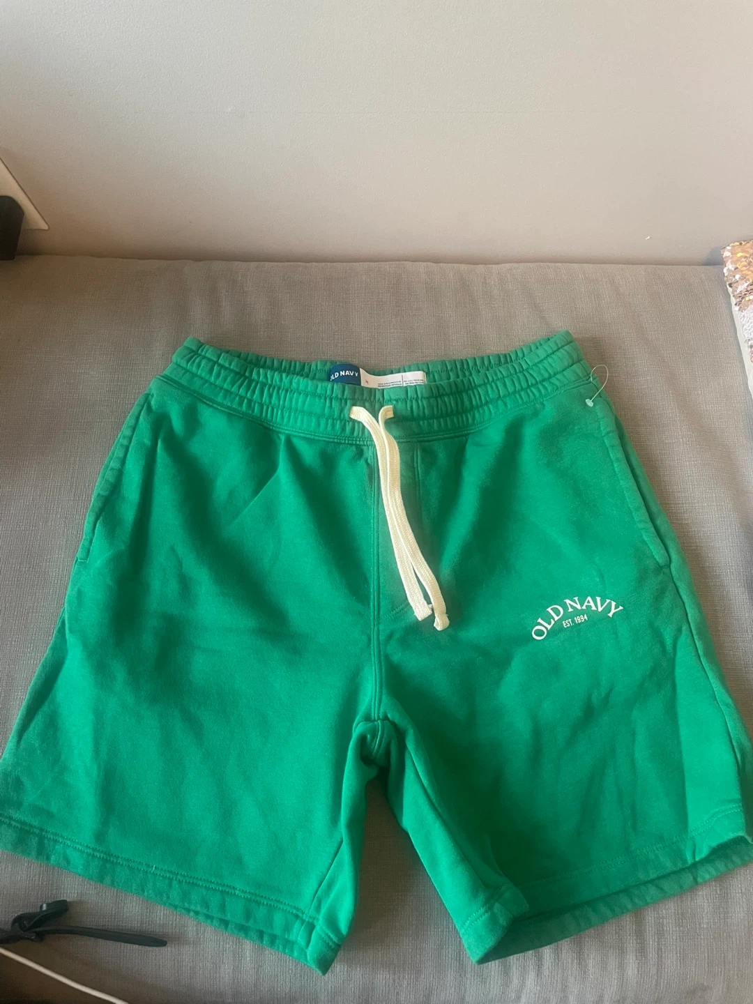 60Selling a pair of Old Navy shorts in a vibrant green colour! They're a size medium and in great condition. Perfect for lounging or casual wear!
