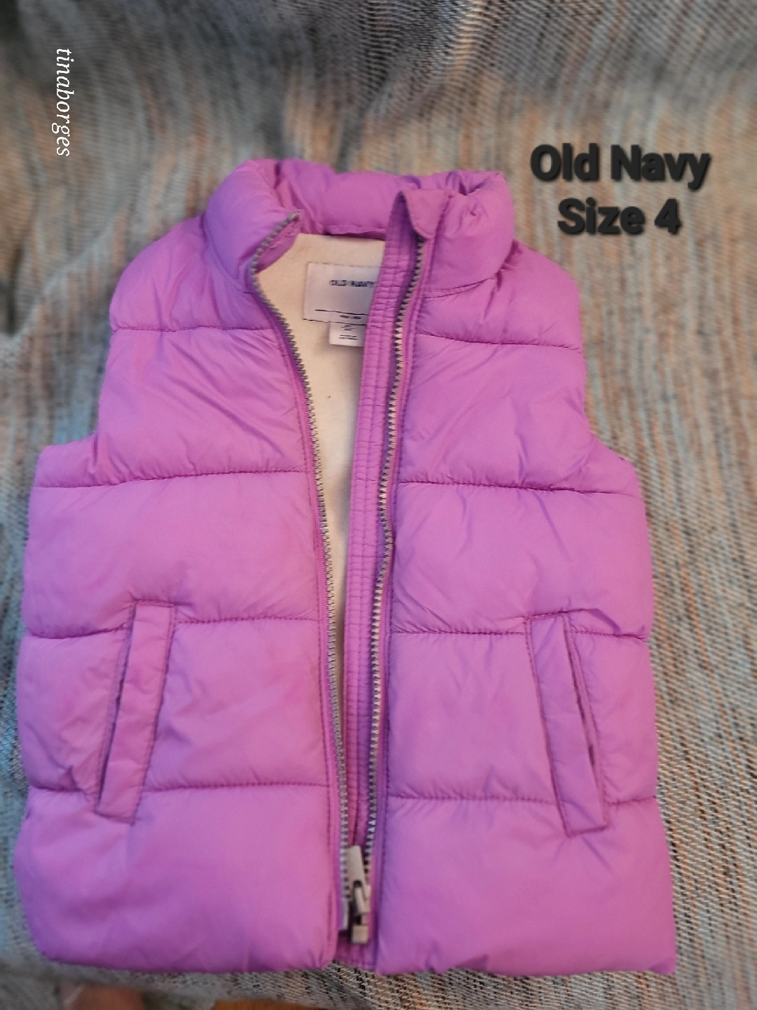 10Here's a cute Old Navy puffer vest in a lovely light purple colour! It's a size 4 and perfect for layering on cooler days. Great for adding a pop of colour to any outfit!