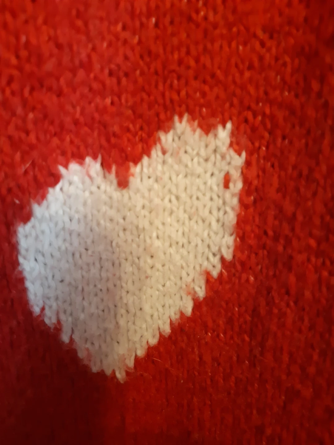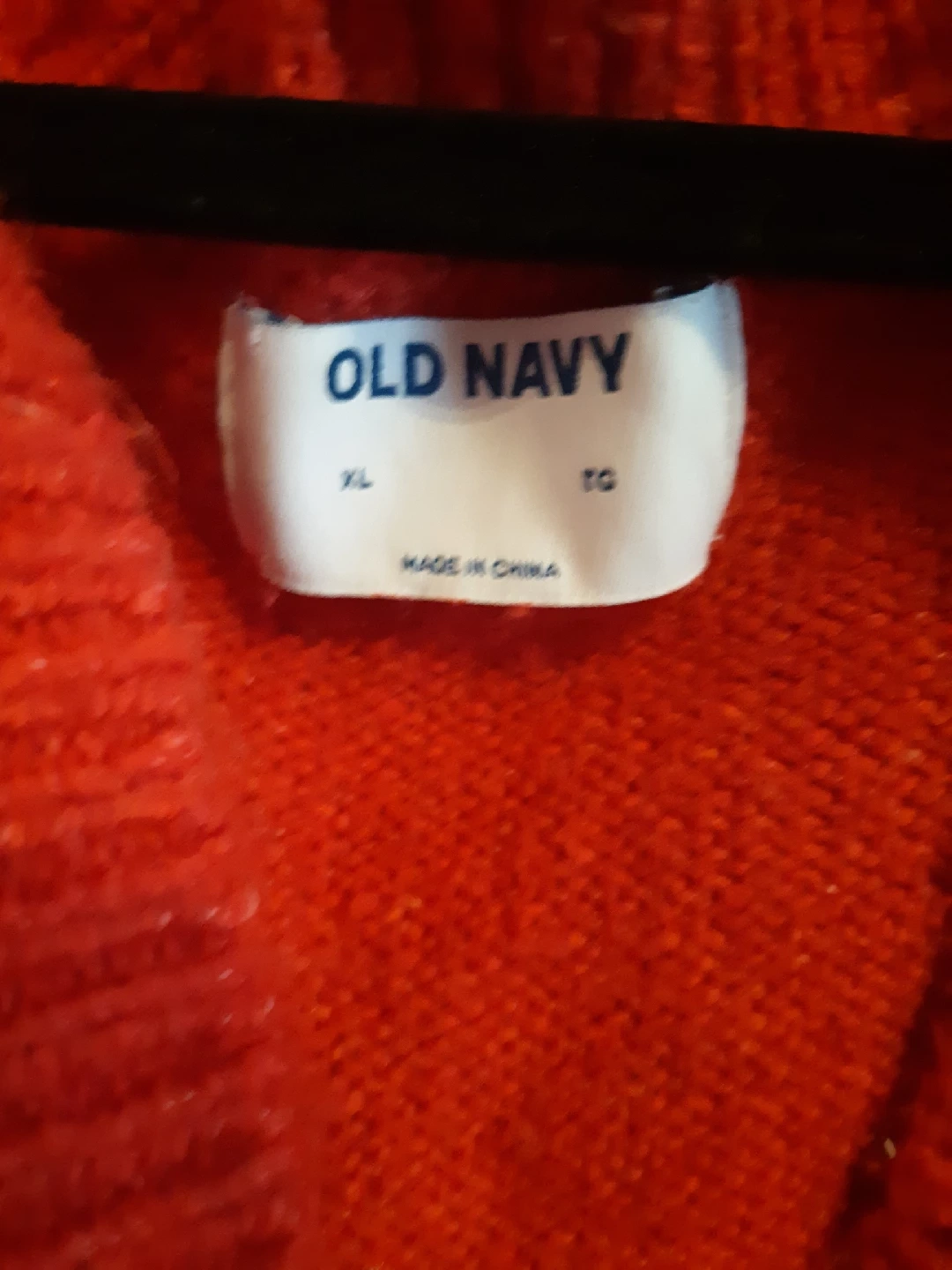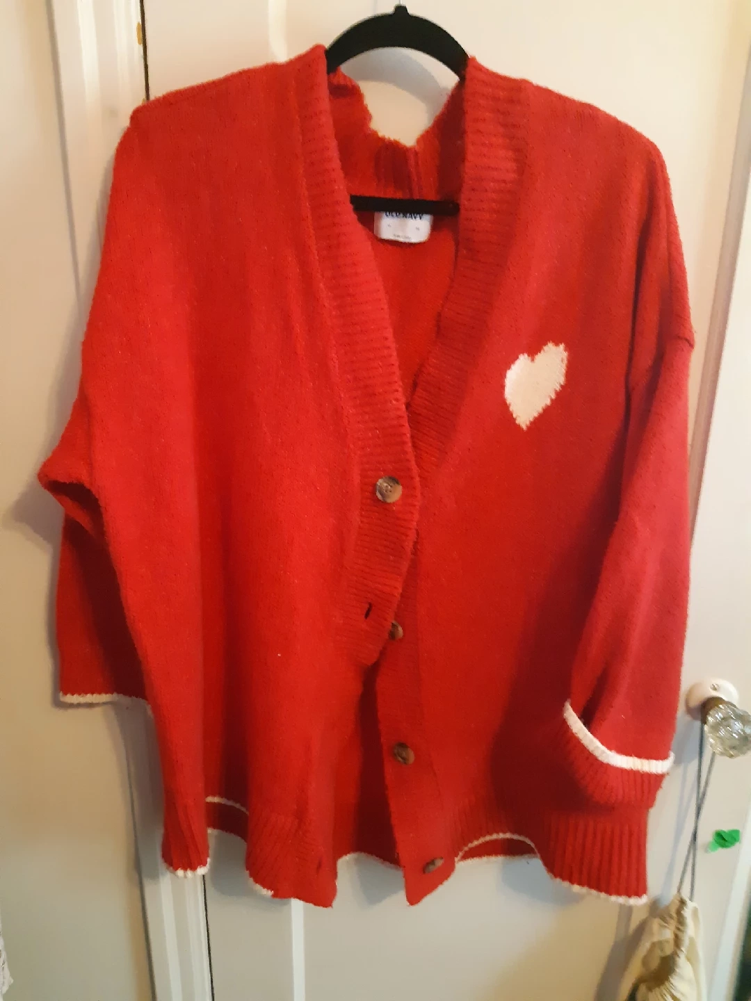 Cozy red cardigan from Old Navy! It's an XL and features a cute white heart design. Perfect for layering or wearing on its own