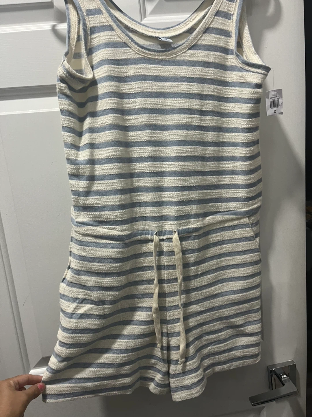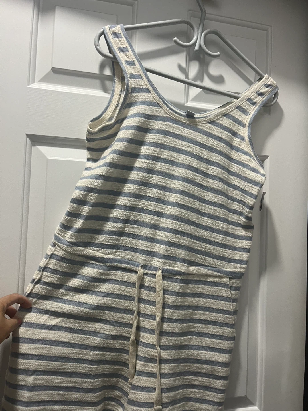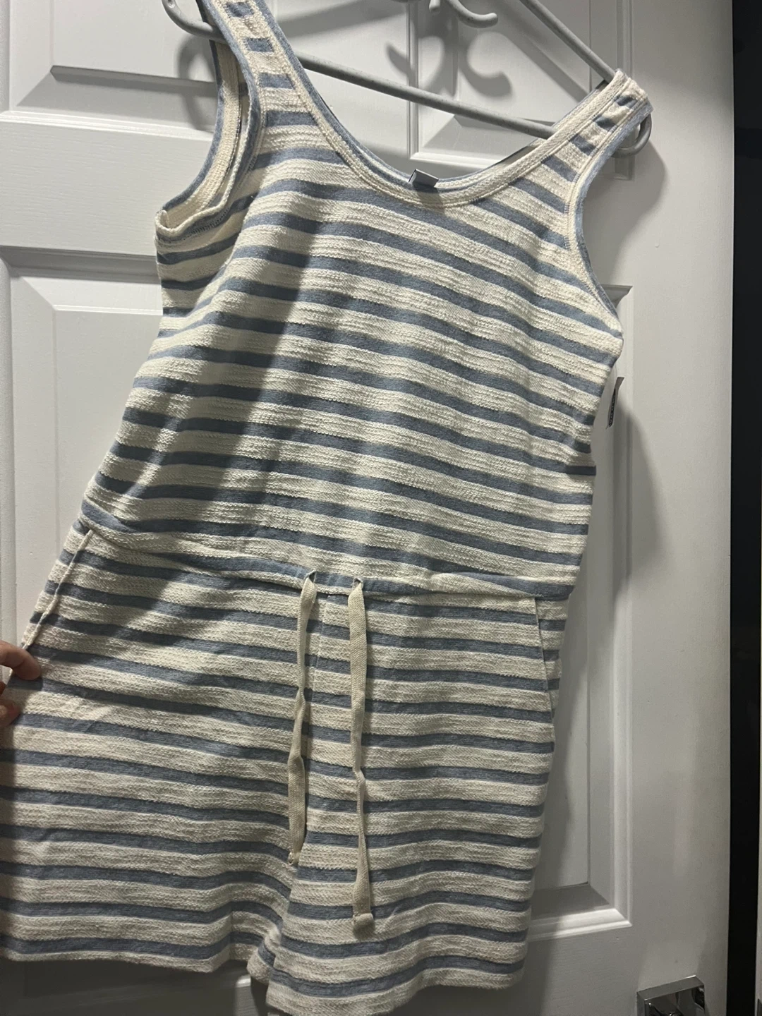 10Here's a comfy striped romper from Old Navy! It's a size small and features a cute drawstring waist. Perfect for lounging or a casual day out!