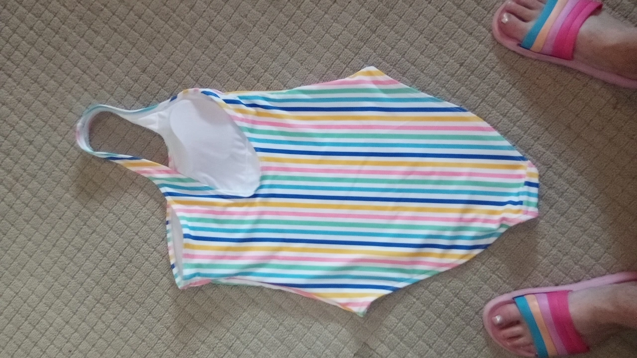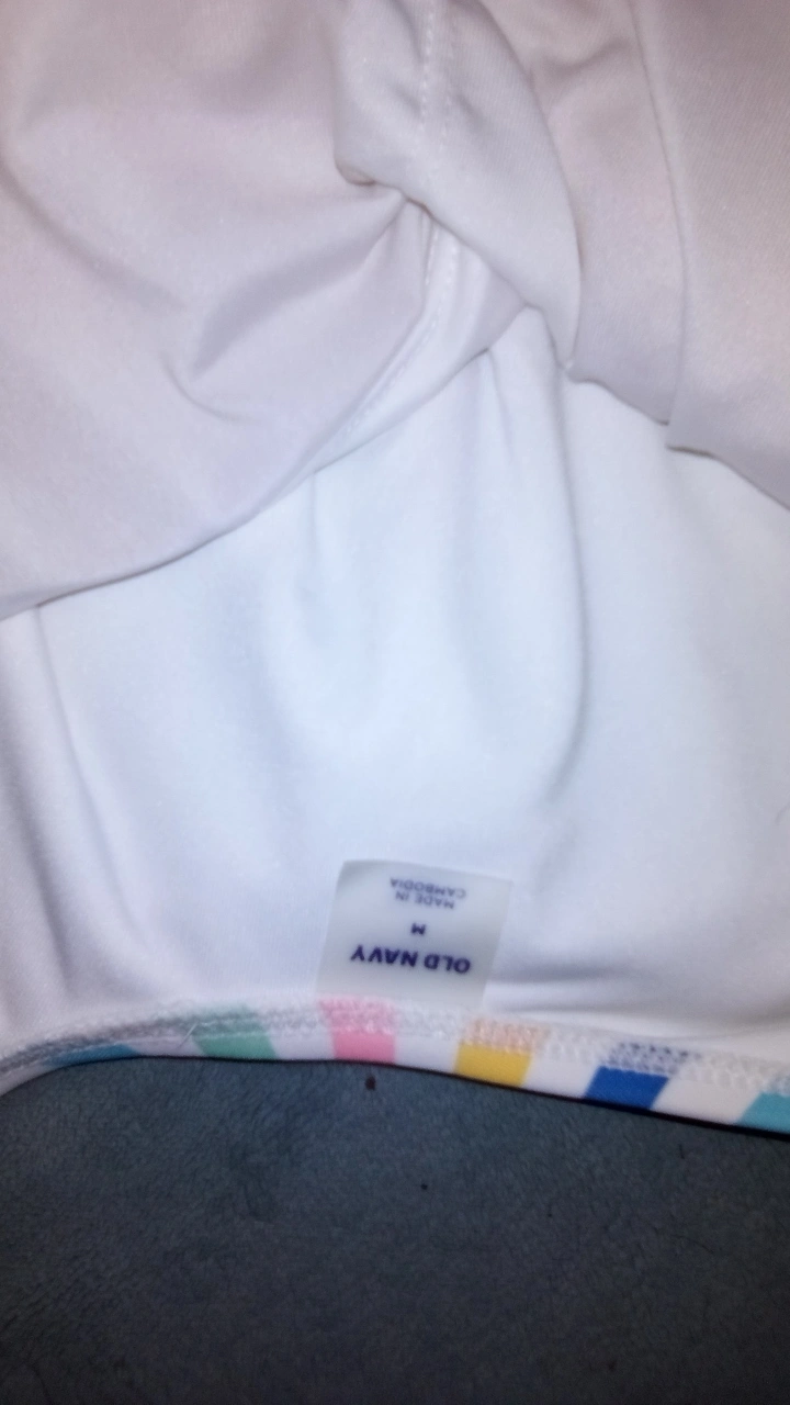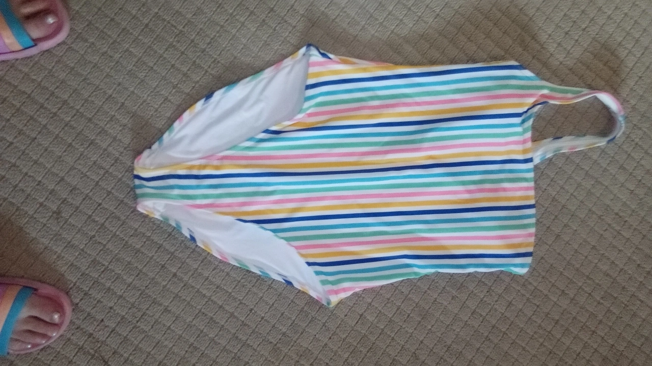 Cute Old Navy swimsuit in a colourful striped pattern! It's a size medium and in great condition. Perfect for the pool or beach!