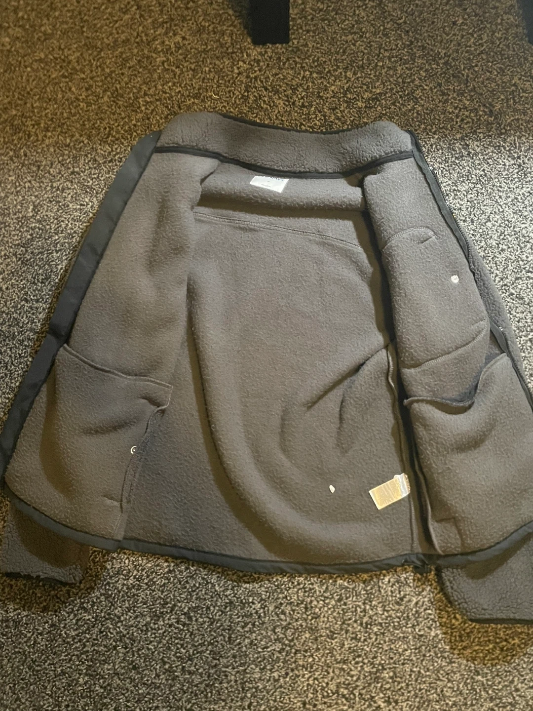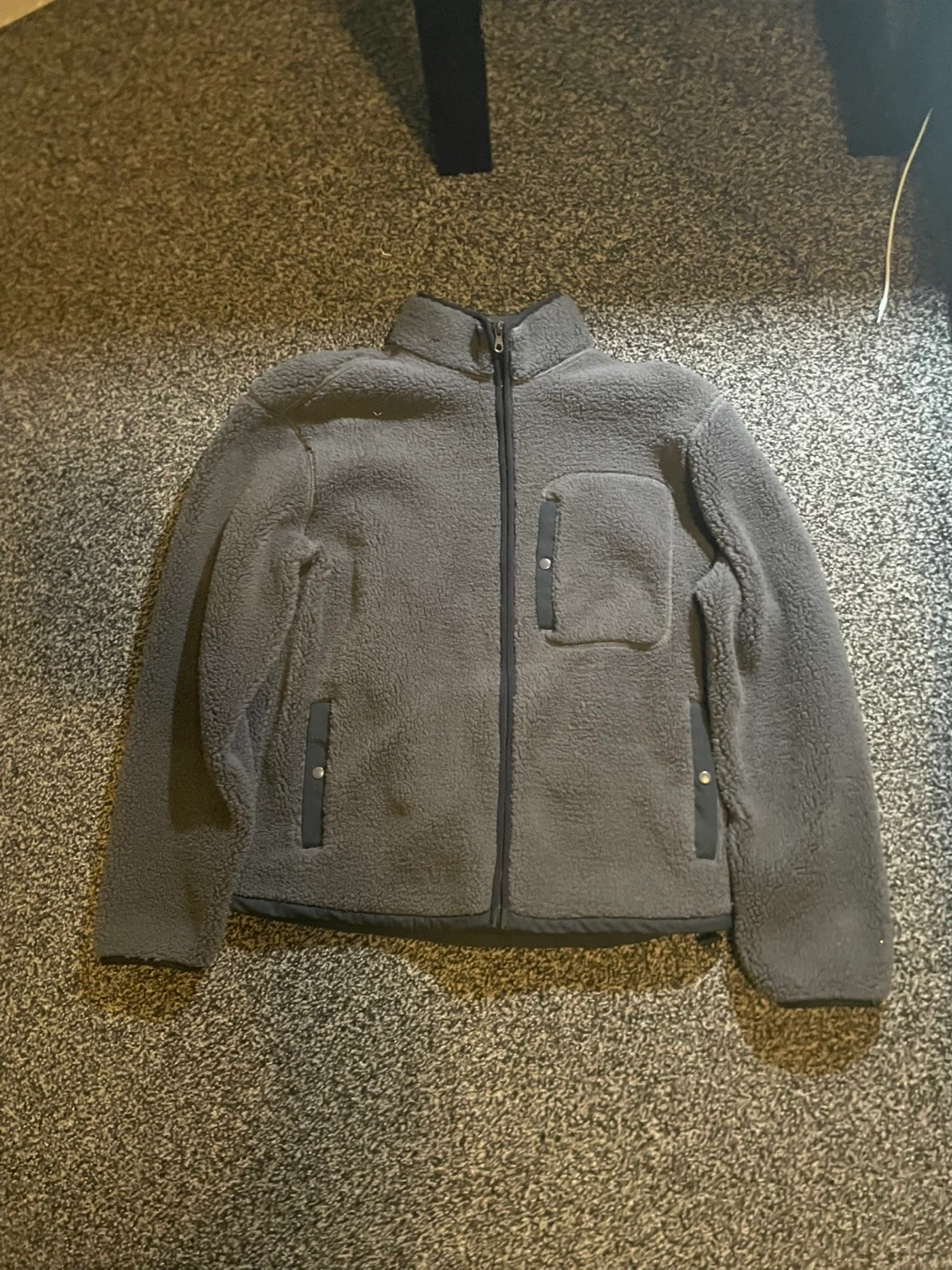 68Cozy Old Navy jacket in a neutral grey colour. It's a size medium and has a full zip front. Perfect for layering on chilly days! It is brand new never worn just took off the tag.goes for 30-60 dollars on old navy.