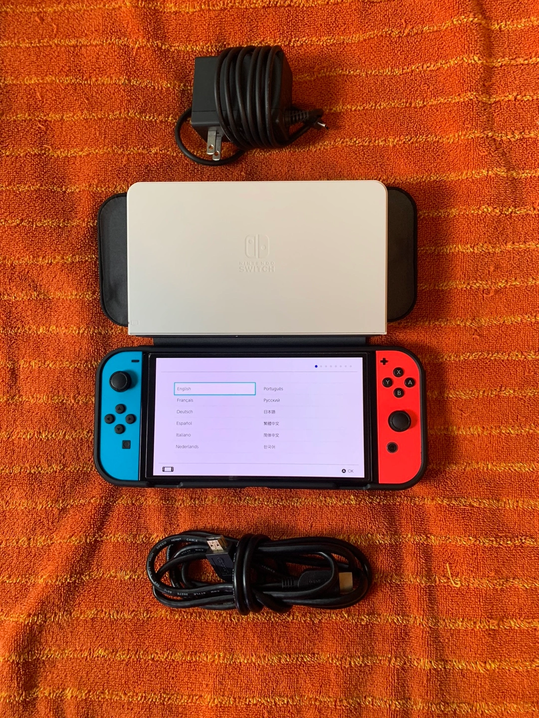 56It has been cleaned, tested, and working perfectly! It does have a few cracks on the screen protector *see picture*. Comes with, - Nintendo Switch - Docking Station - Carrying Case - Power Cable - HDMI Cable Looking for 335, message if you’re interested!