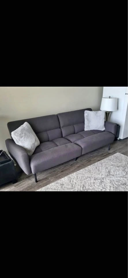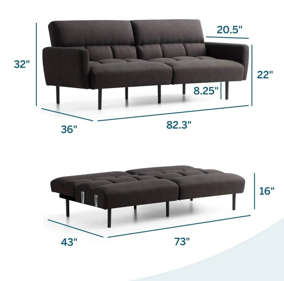10Fabric: Charcoal Polyester Blend. Multi-Functional Design. The hybrid design provides comfortable seating and sleeping, perfect for small spaces and lounging areas. Let me know if you're interested!