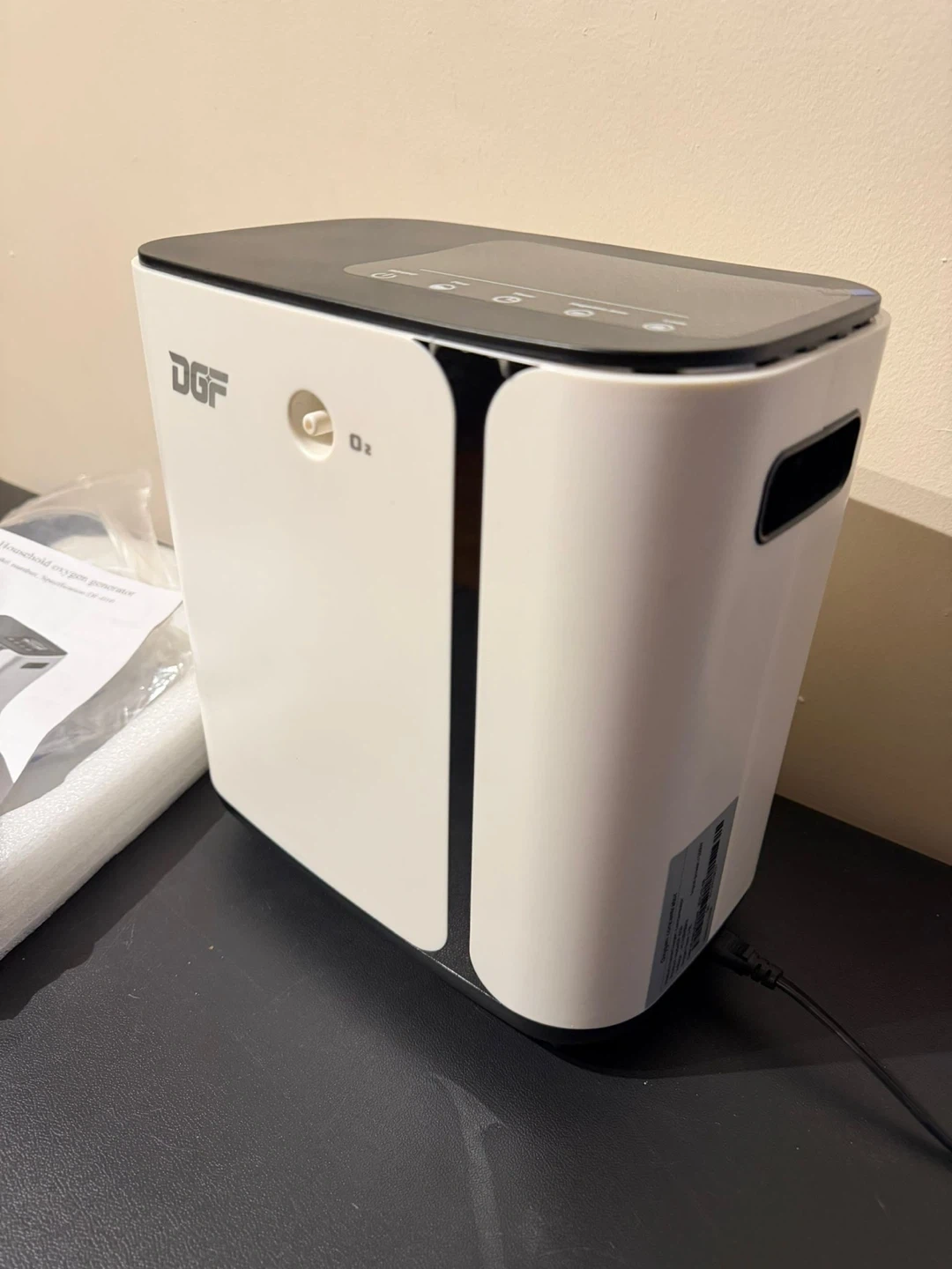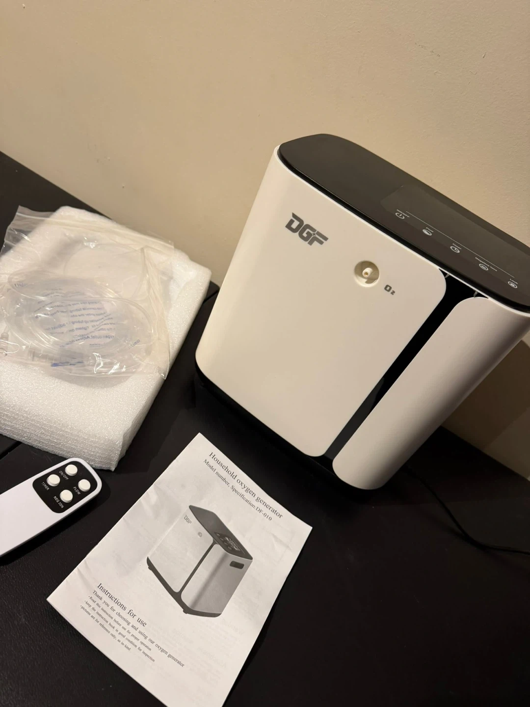 Up for sale is this DGF Household Oxygen Generator (Model DF-010). This is a sleek, modern unit designed for home wellness, relaxation, and air enrichment. It’s perfect for those who want to boost their oxygen levels at home or need a "refresh" after a long day.
