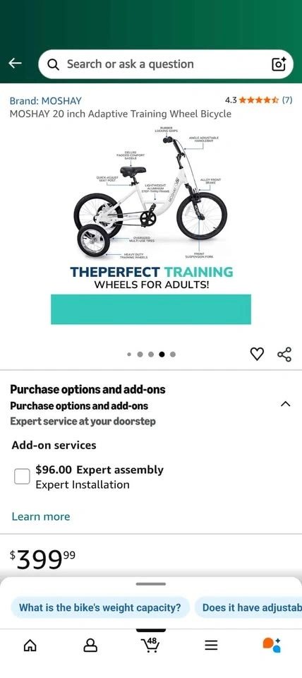 Buy & SellMOSHAY 20 inch Adaptive Training Wheel BicycleMOSHAY 20 inch Adaptive Training Wheel Bicycle$275New in box. Pick up in Richmond.WHERE TO MEETWalmart SupercentreView MapSELLERverifiedEltonW Camble29020 reviews0 chats·0 favorites·2 viewsSEND CHAT TO SELLERHi Elton! I’m interested in your listing.Hi Elton! I’m interested in your listing.Get the Karrot app to chatSign In to chat
