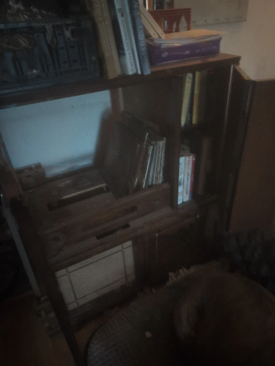 Vintage Wooden Cabinet with Record Storage