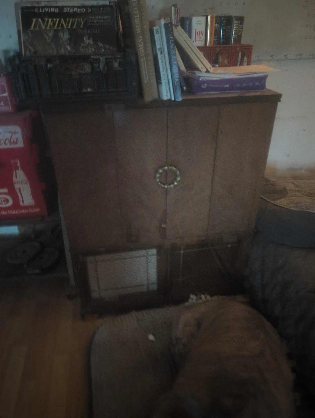 Vintage Wooden Cabinet with Record Storage