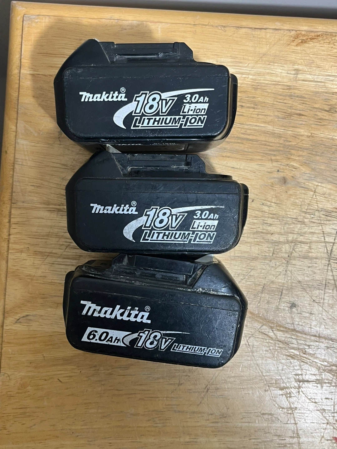 This set includes two Makita cordless drills and three 18V lithium-ion batteries. Three batteries are 3.0Ah and one is 6.0Ah. These drills are great for various DIY and professional tasks.