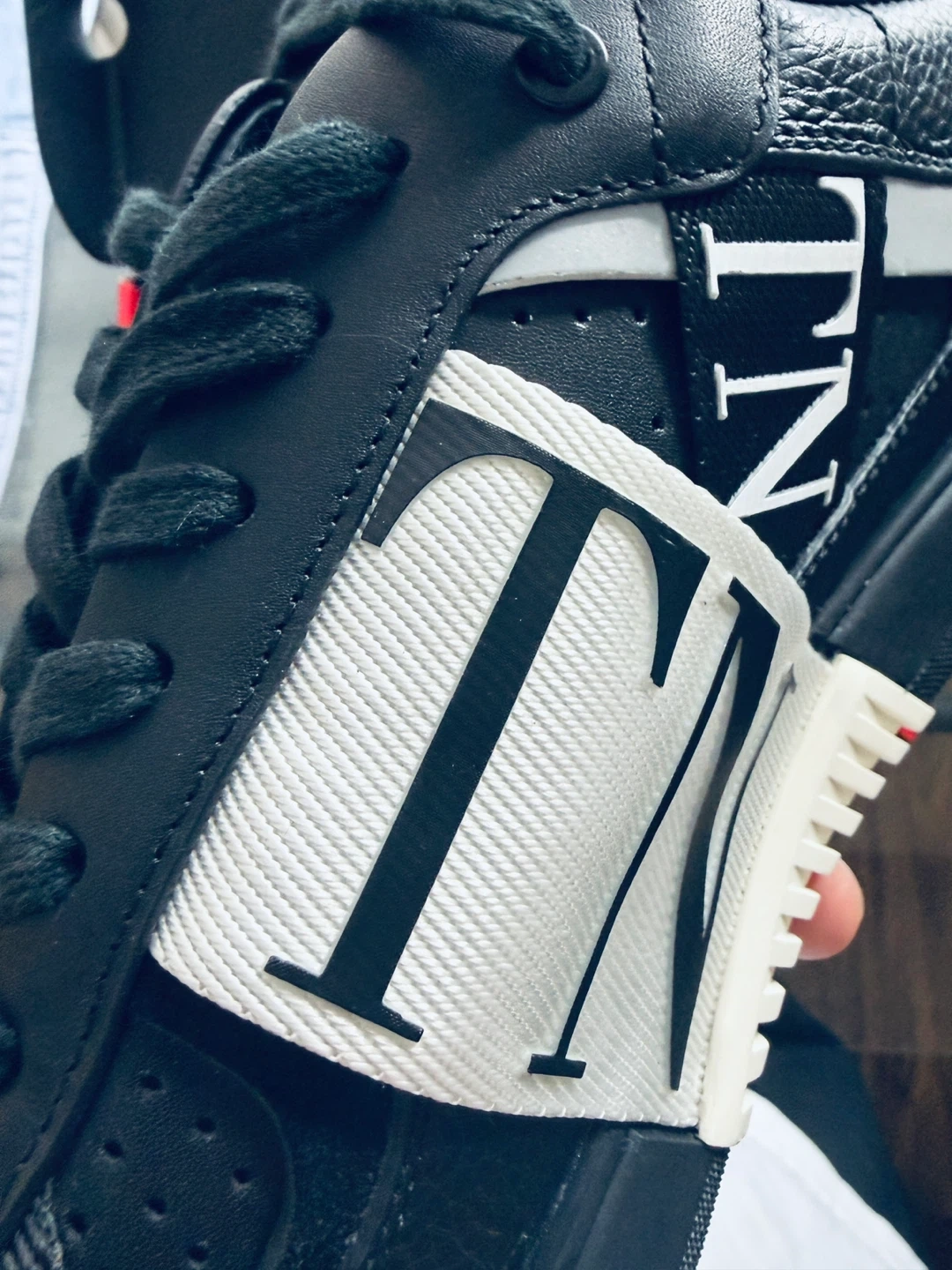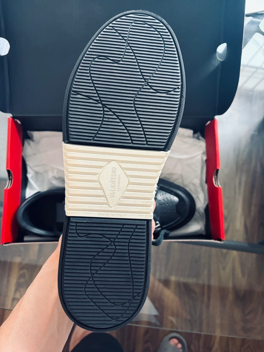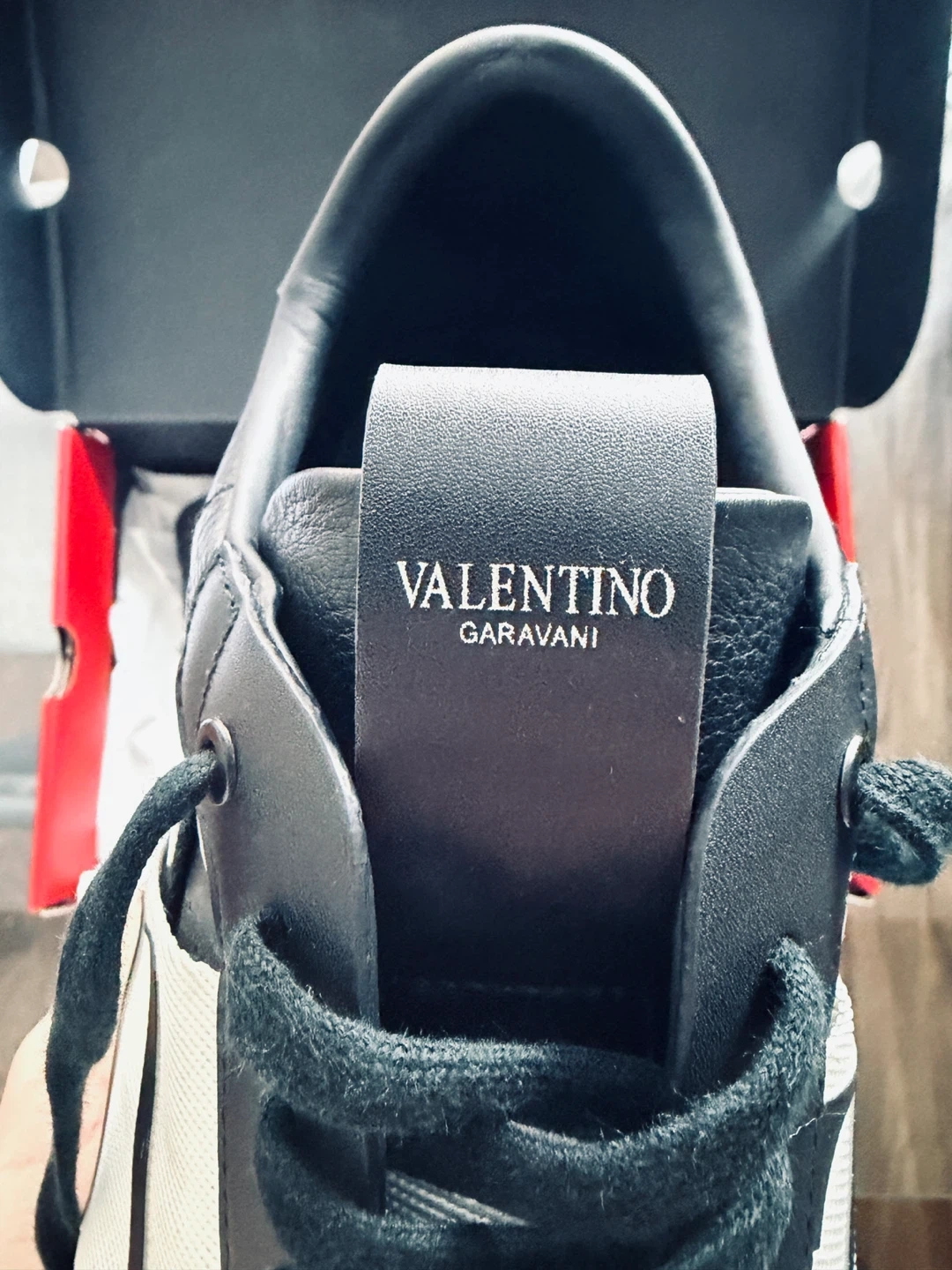 Valentino Garavani black leather sneakers with white strap detail. Made in Italy. Selling my dad’s shoes that never been worn. US M 11-11.5