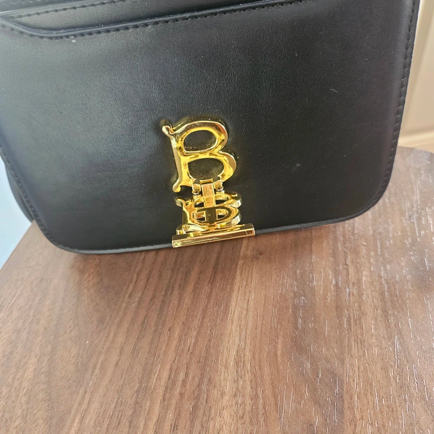 Burberry Black Leather Shoulder Bag with Gold TB Monogram