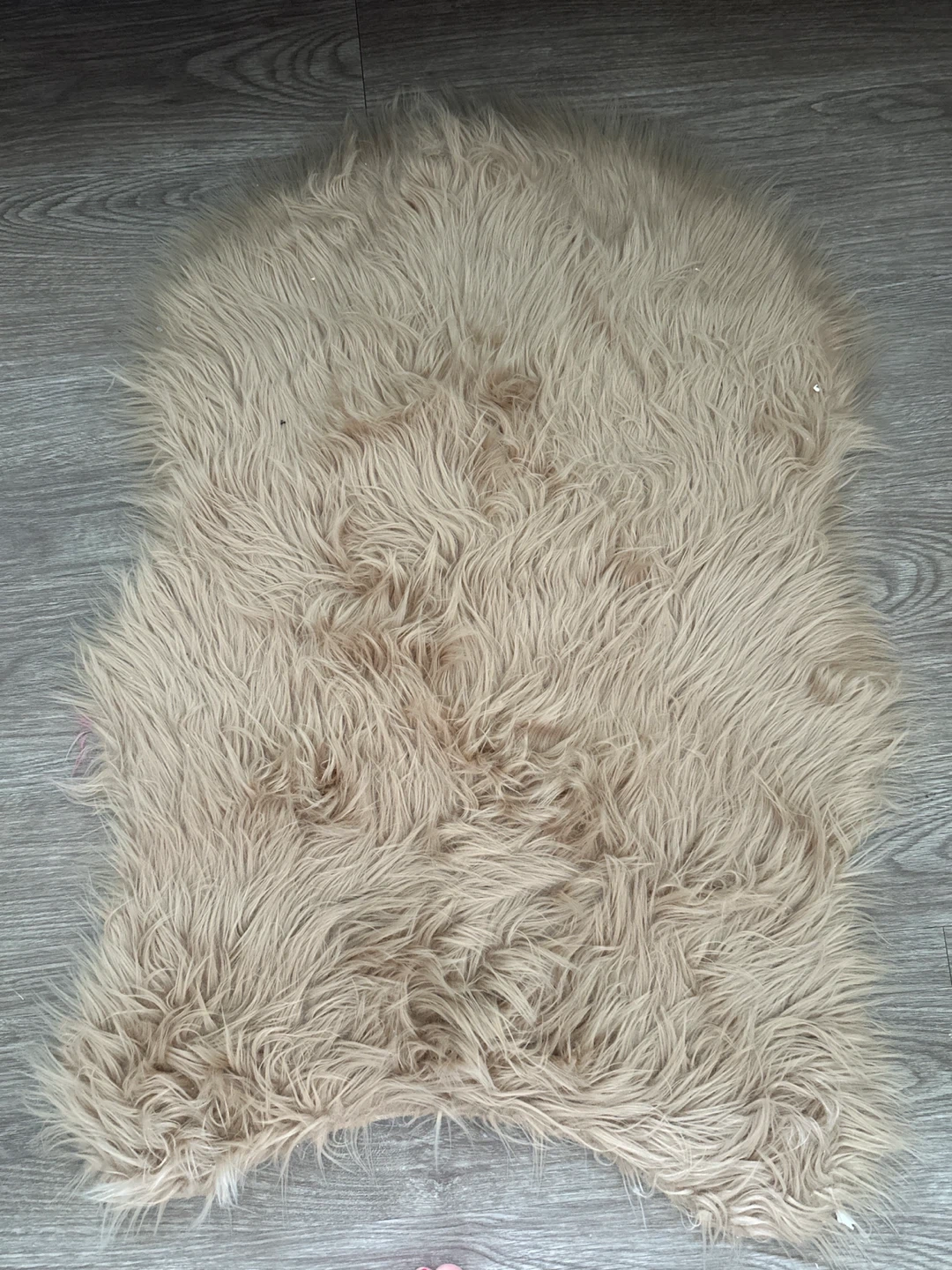 This soft, cream-coloured faux fur rug adds a cozy feel to any room. It's made with a plush, shaggy texture for ultimate comfort. A great accent piece for a bedroom or living area!