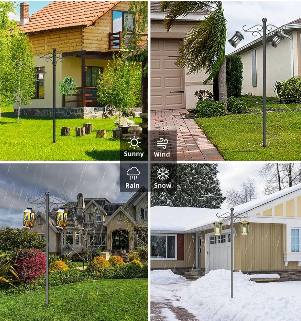 Thickened Double Shepherd Hook Stand for Hanging Plants, Lanterns, Solar Lights, Wind Chime, Hummingbird Feeder, Garden